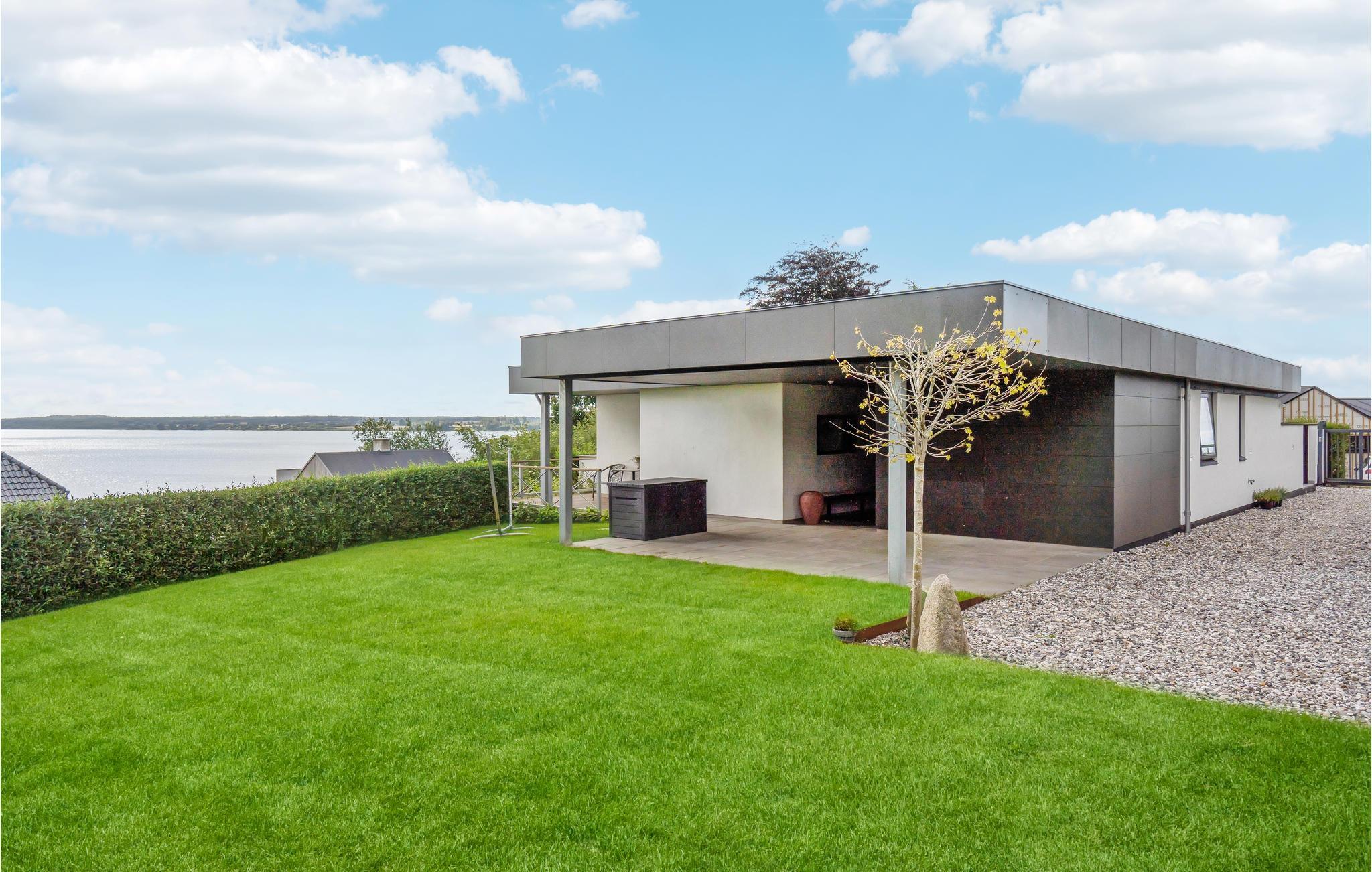 Stijlvol vakantiehuis met hot tub aan Vejle Fjord, dichtbij zandstrand en natuur, ideaal voor rust en ontspanning.
