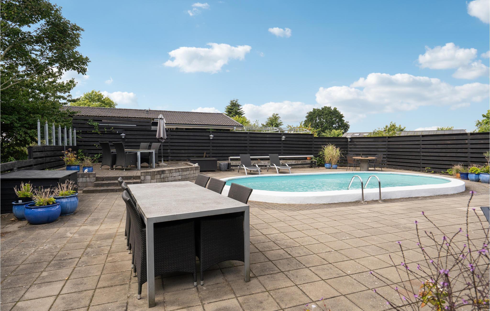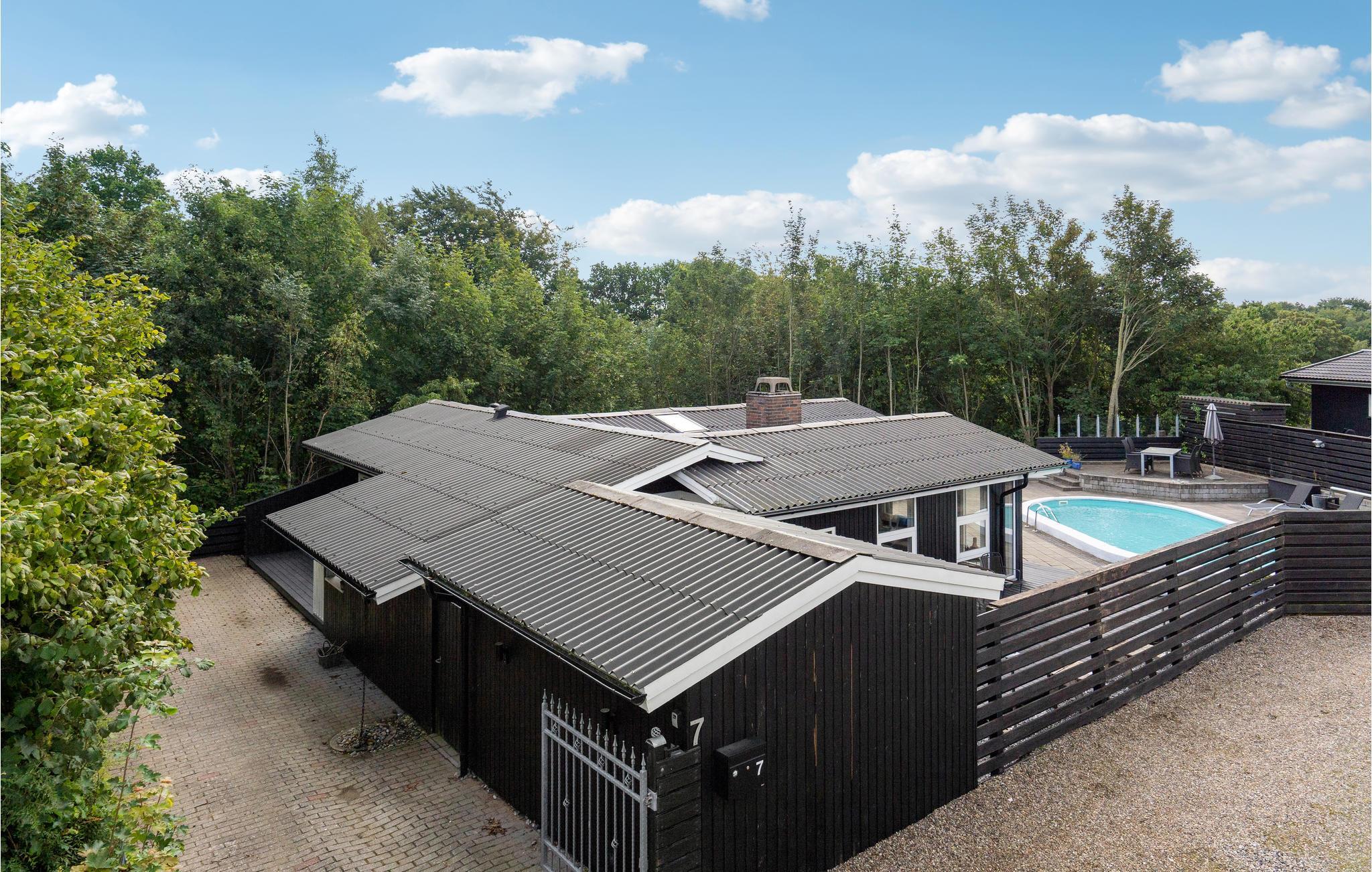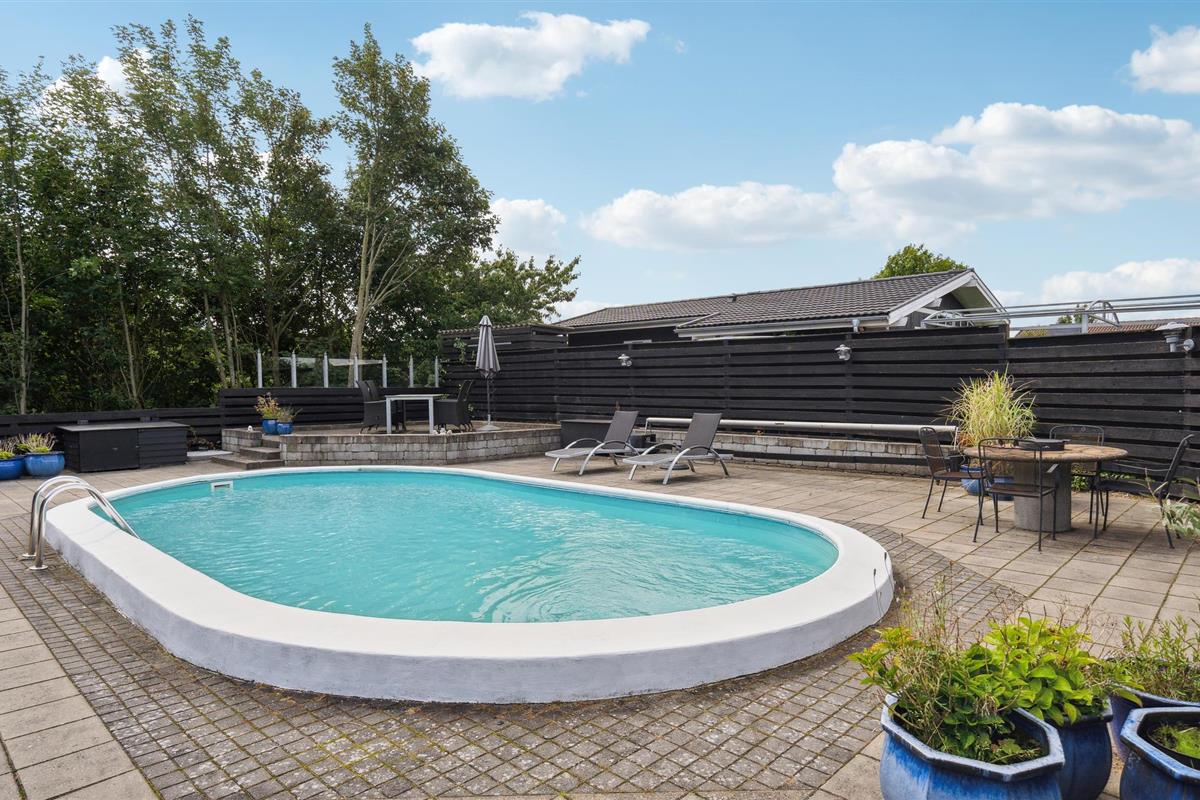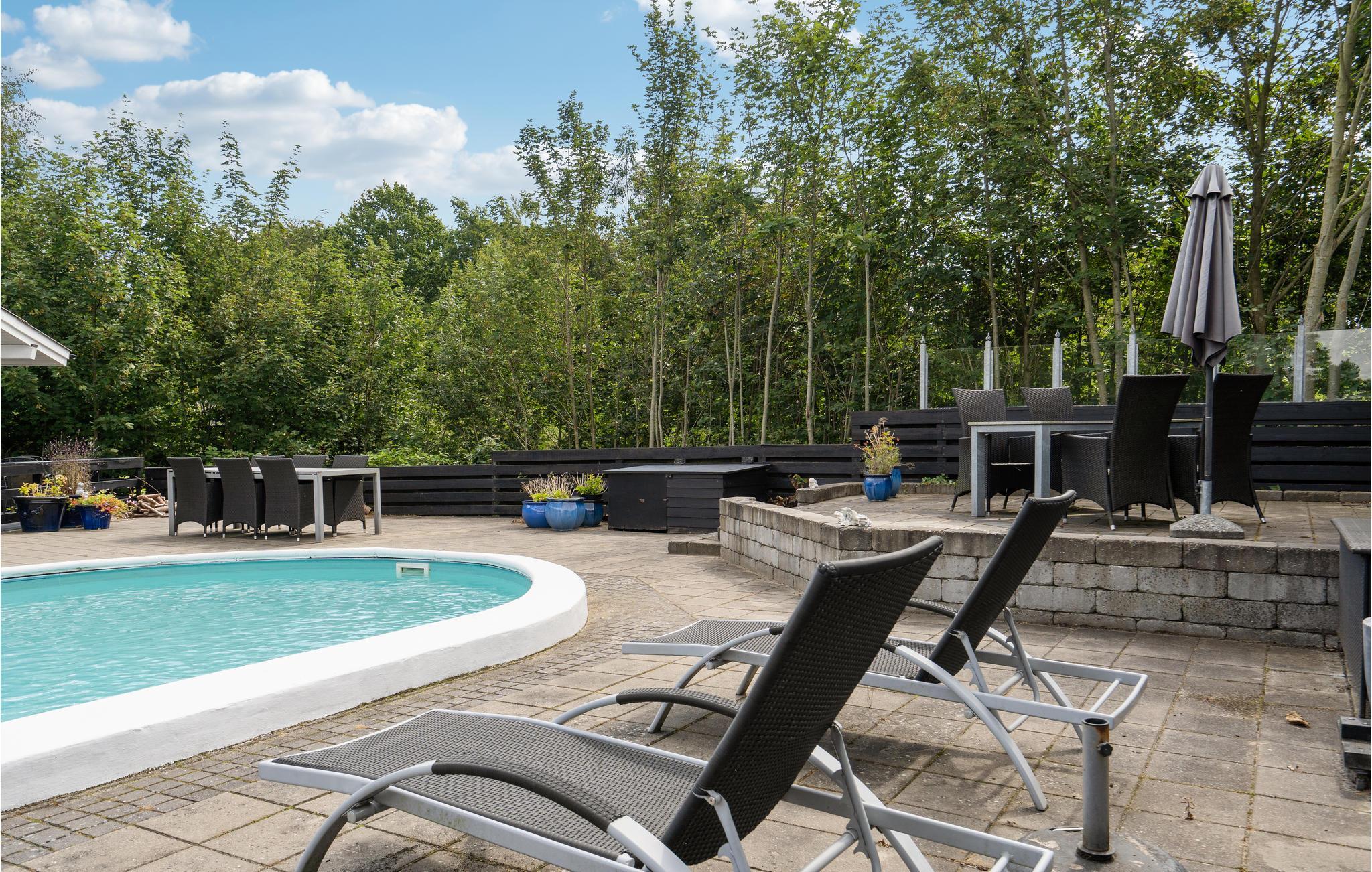 Op een rustige locatie in Hvidbjerg heet dit smaakvolle vakantiehuis met privézwembad je welkom.