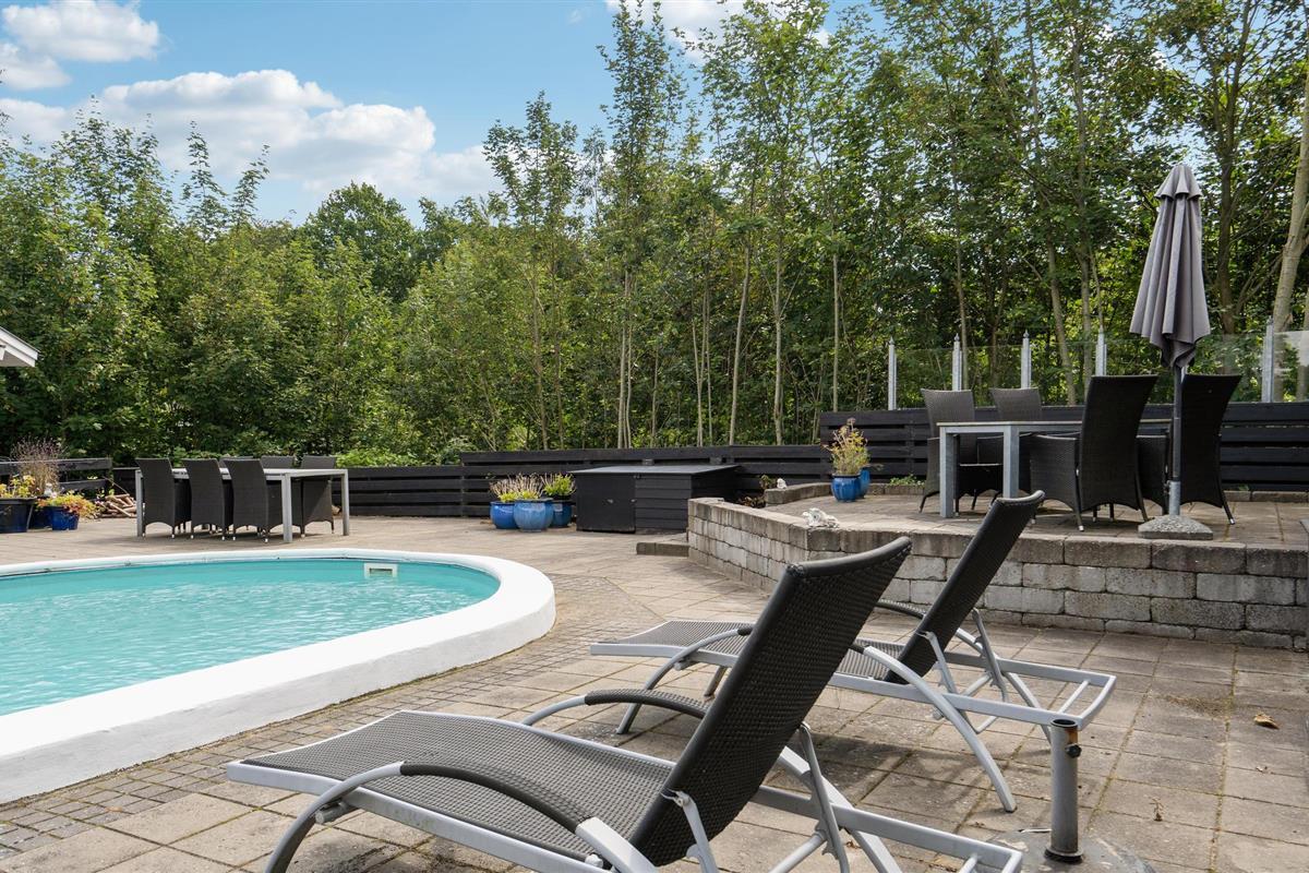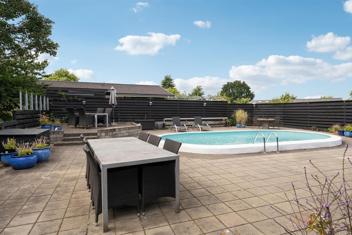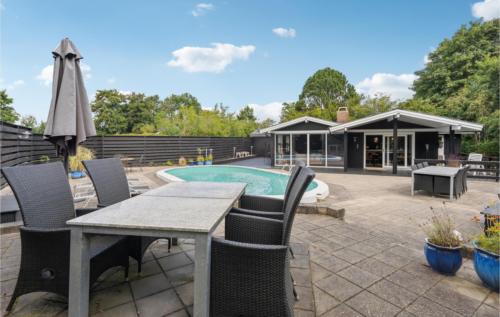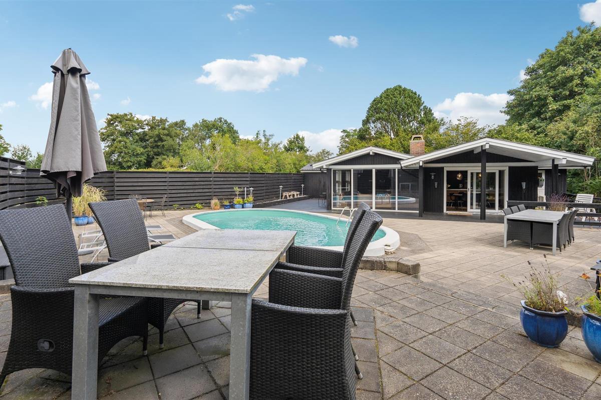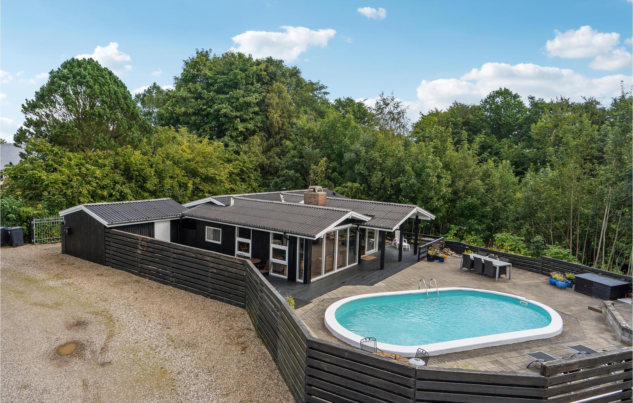 Op een rustige locatie in Hvidbjerg heet dit smaakvolle vakantiehuis met privézwembad je welkom.