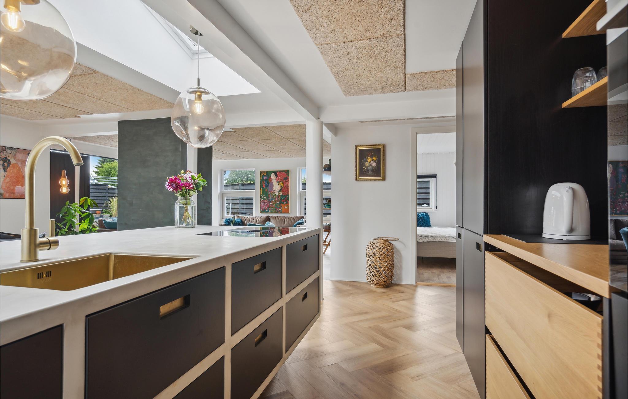 Kijk uit naar deze prachtige en uitnodigende oase aan het Vejle Fjord. Kom aan en geniet van de stijlvolle kamers van hoge kwaliteit die het gemakkelijk maken om je hier thuis te voelen. De moderne inrichting en mooie decoraties creëren een rustgevende sfeer die geen van je wensen onvervuld laat. Bedien de houten lepels in de open keuken of maak het jezelf 's avonds gemakkelijk op de banken en kijk naar een onderhoudende film.