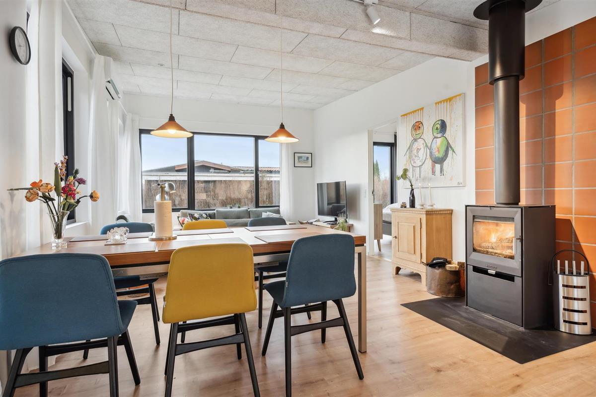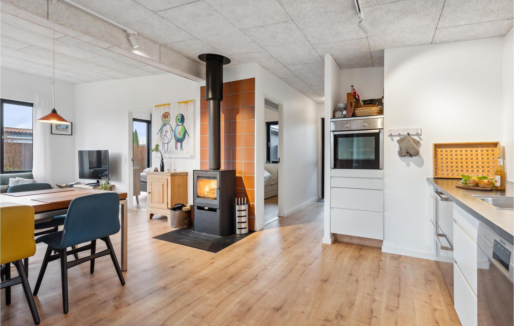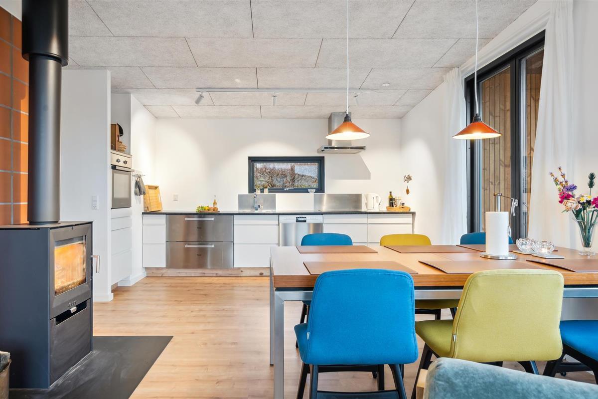 Dit mooie vakantiehuis aan het Vejle Fjord is smaakvol ingericht en met liefde gedecoreerd. Zodra u binnenkomt, zult u de lichte woonsfeer en de smaakvolle inrichting opmerken. Maak het jezelf hier gemakkelijk en geniet van de sfeer van de uitnodigende woonkamer, waar de houtkachel het warme hart van de open kamer is op koelere dagen.