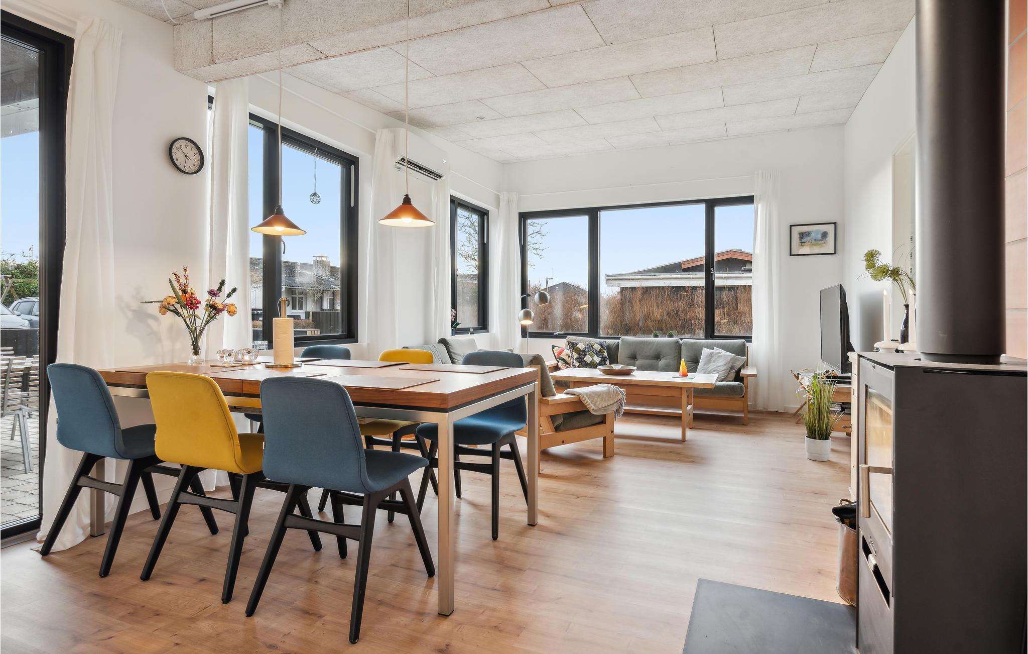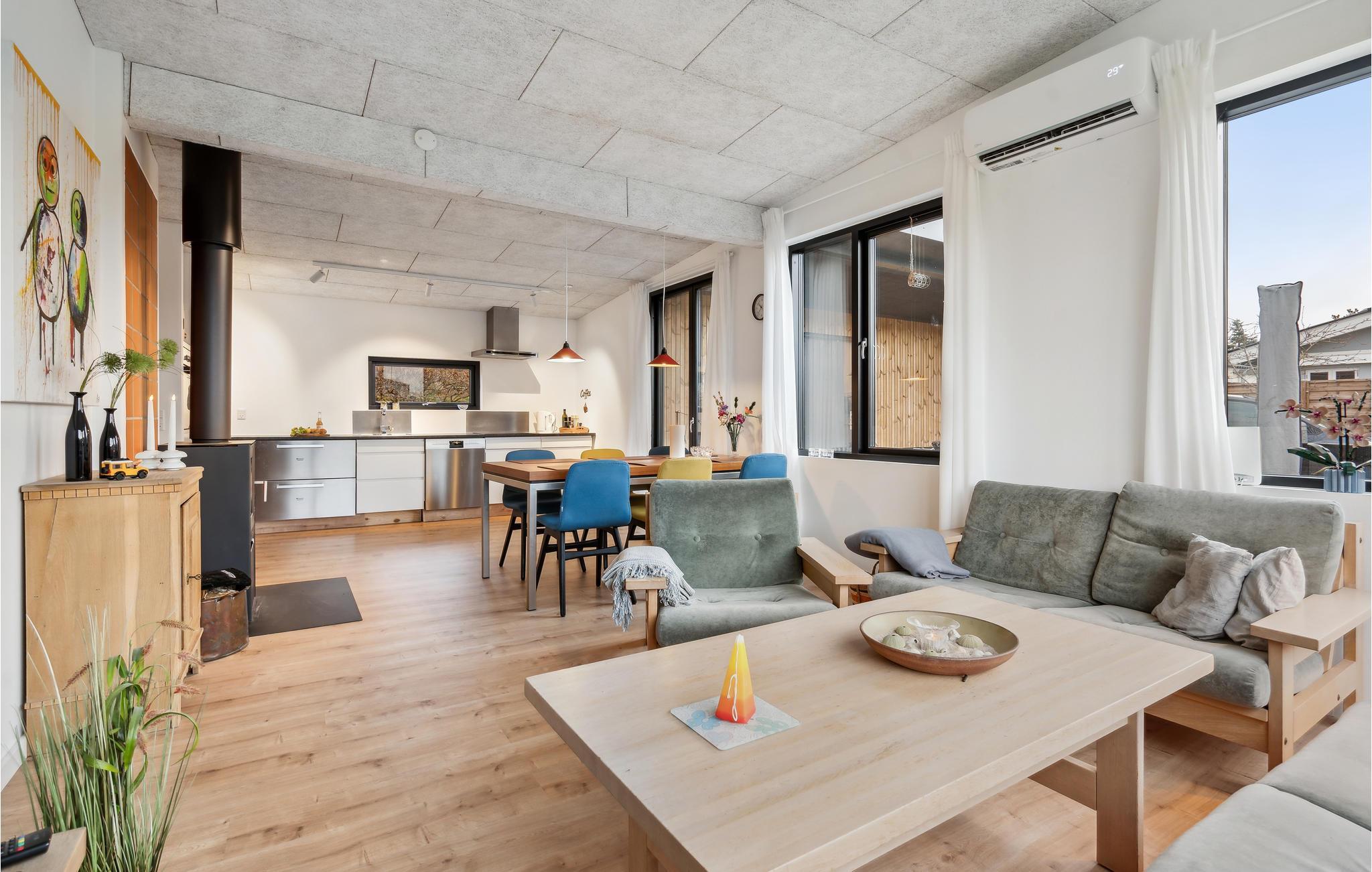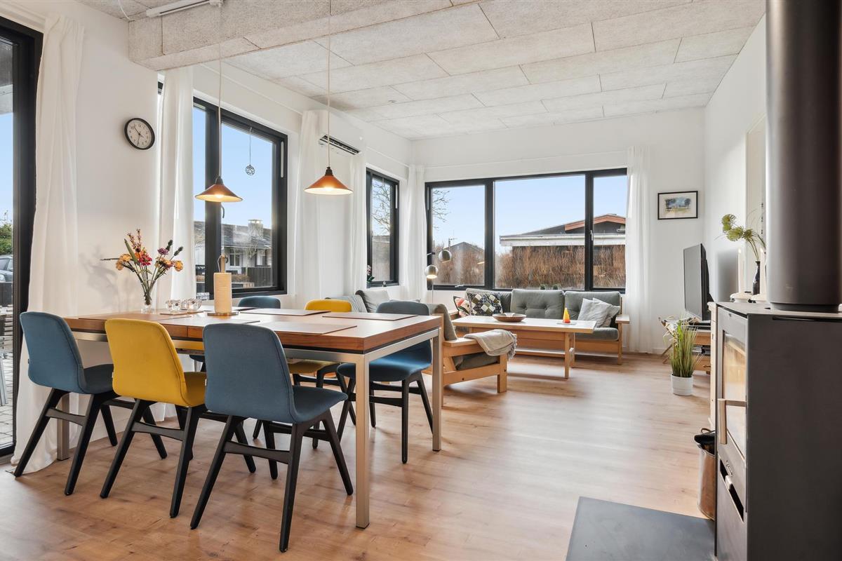 Dit mooie vakantiehuis aan het Vejle Fjord is smaakvol ingericht en met liefde gedecoreerd. Zodra u binnenkomt, zult u de lichte woonsfeer en de smaakvolle inrichting opmerken. Maak het jezelf hier gemakkelijk en geniet van de sfeer van de uitnodigende woonkamer, waar de houtkachel het warme hart van de open kamer is op koelere dagen.