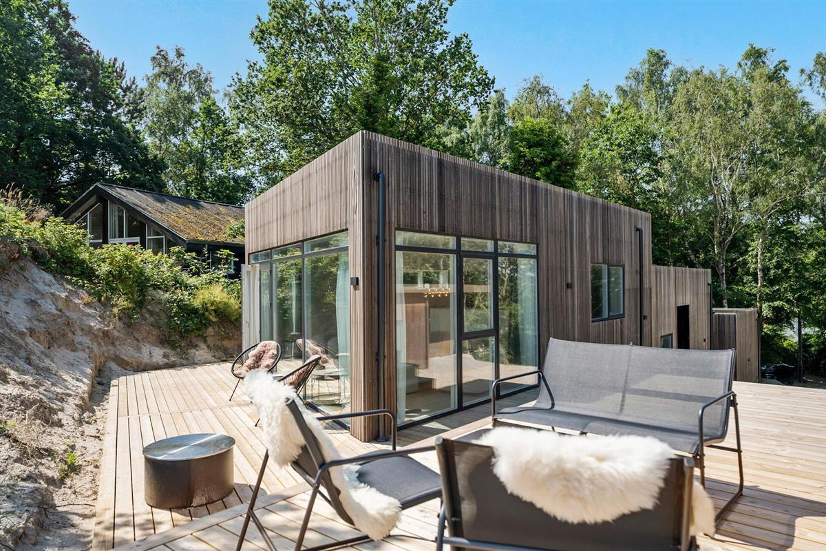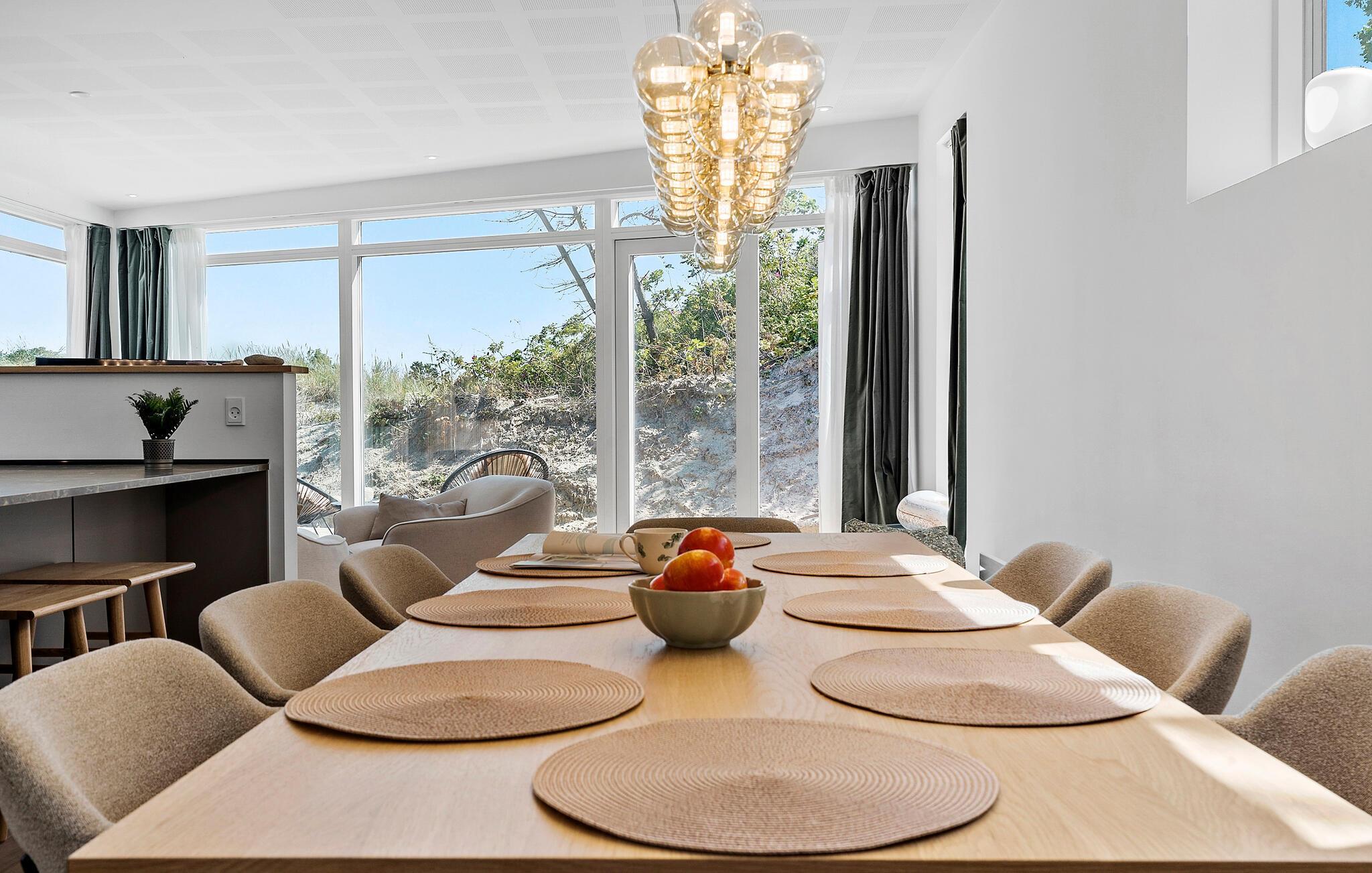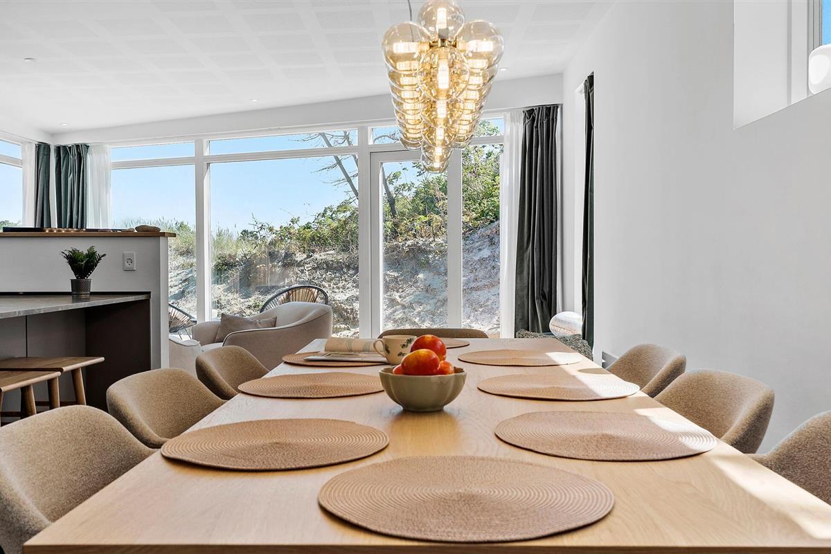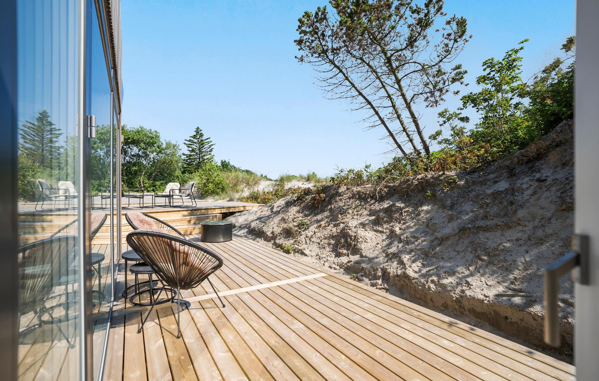 Omgeven door de duinen biedt het grote houten terras een fantastische omgeving om te ontspannen en te zonnebaden. Blijf hier hangen met een glas wijn in de buitenlucht en vang een prachtig uitzicht op het water.