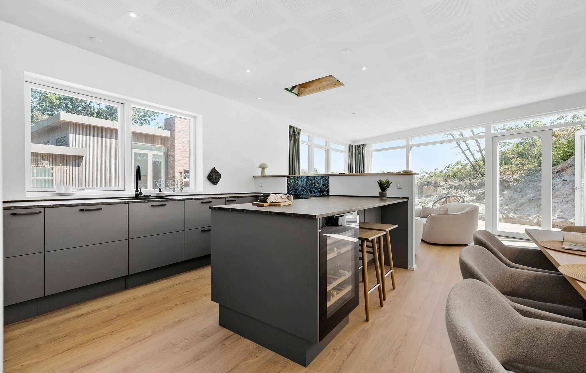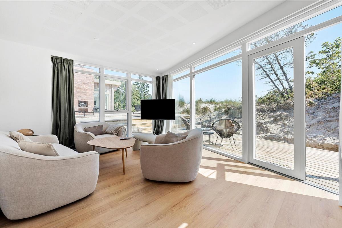 Modern vakantiehuis aan de zandduinen van Hvidbjerg met zeezicht en luxe faciliteiten.