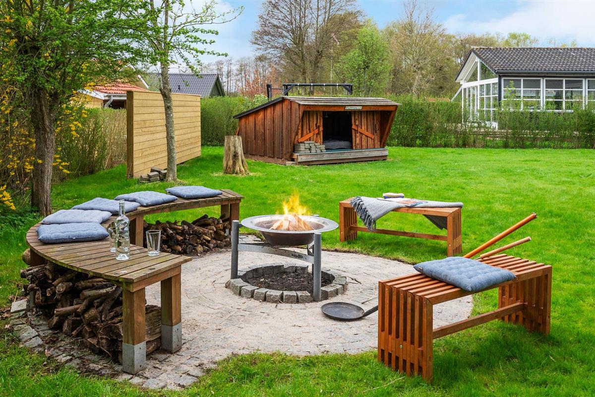 Breng je tijd door op het ruime terras met comfortabele zitplaatsen. Geniet van de dag in de buitenlucht en lees een boek. De groene buitenruimte nodigt je uit om te ontspannen, bijvoorbeeld in de gezellige schuilhut, maar ook om te sporten op het grote grasveld. Als het 's avonds donker begint te worden, kunnen jullie allemaal samenkomen rond de vuurplaats en elkaar spannende verhalen vertellen.