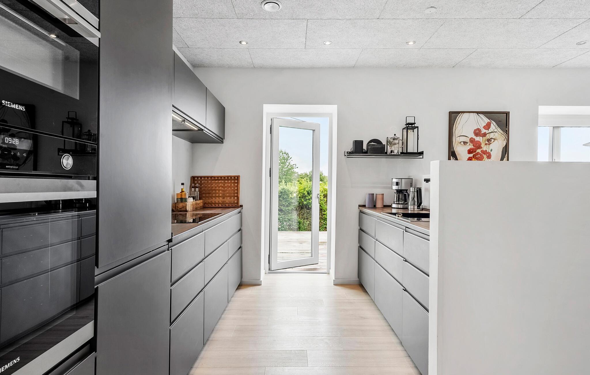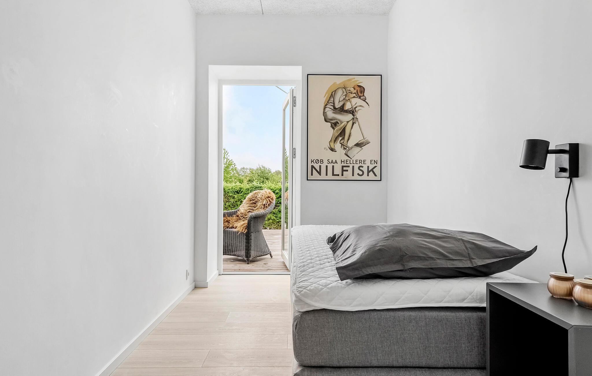 Maak een korte wandeling naar het zandstrand aan de Vejle Fjord, adem de frisse lucht in en laat je blik ver over het water dwalen. Ontdek het groene heuvellandschap op idyllische wandelpaden of geniet van de rust op een fietstocht door het platteland. Het nabijgelegen kasteel Engelsholm met zijn park nodigt ook uit tot een reis door de geschiedenis.