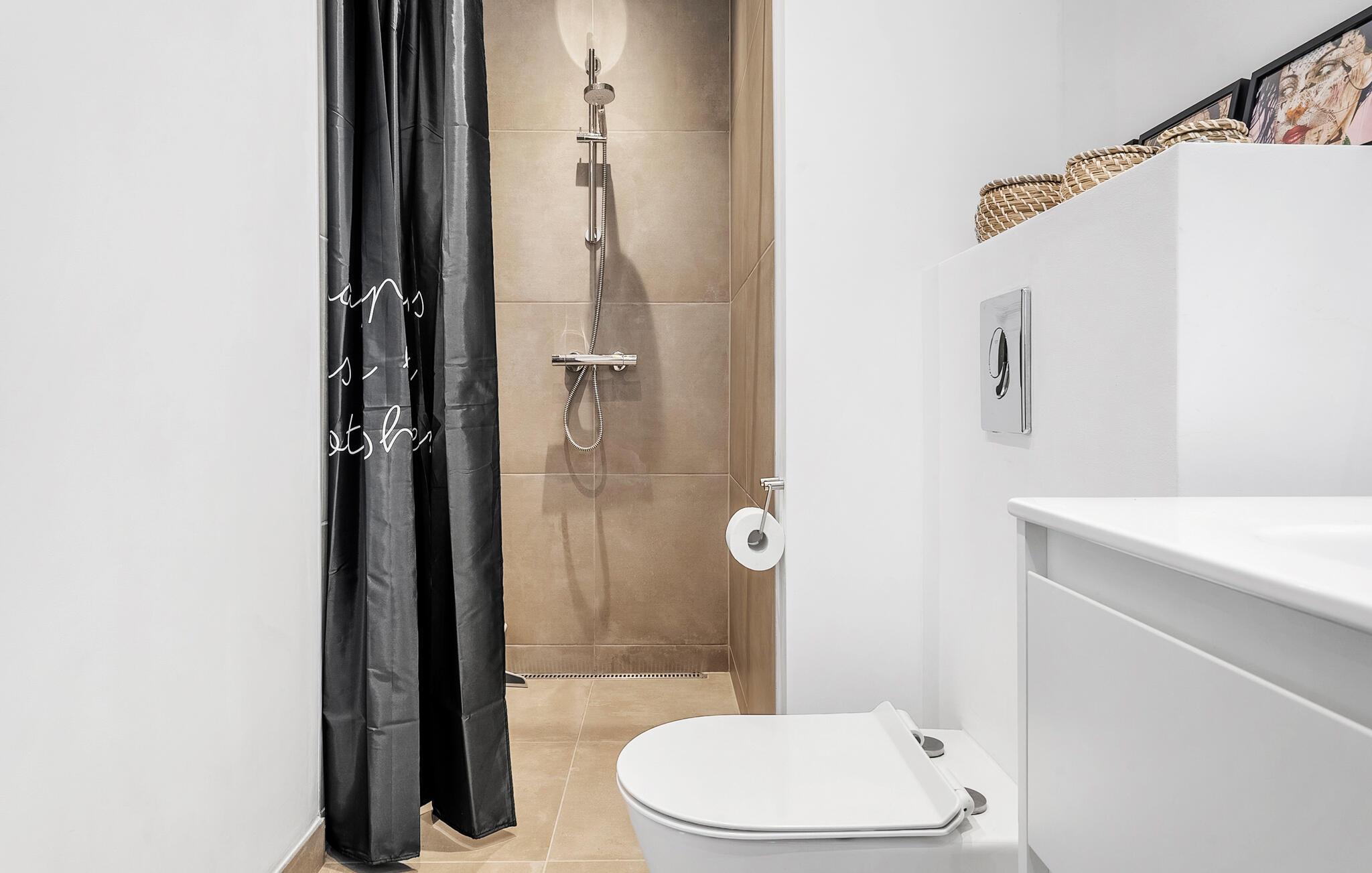 Badkamer (nr. 1) - Toilet: warm en koud water. Douche