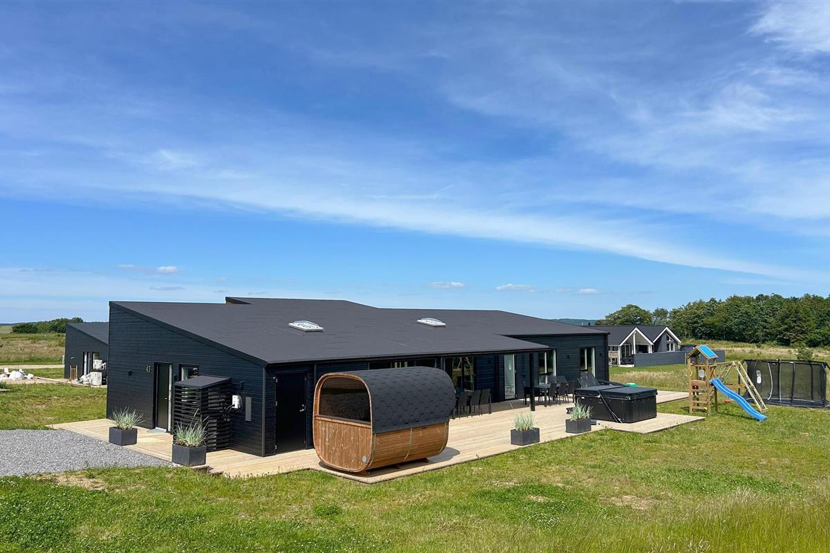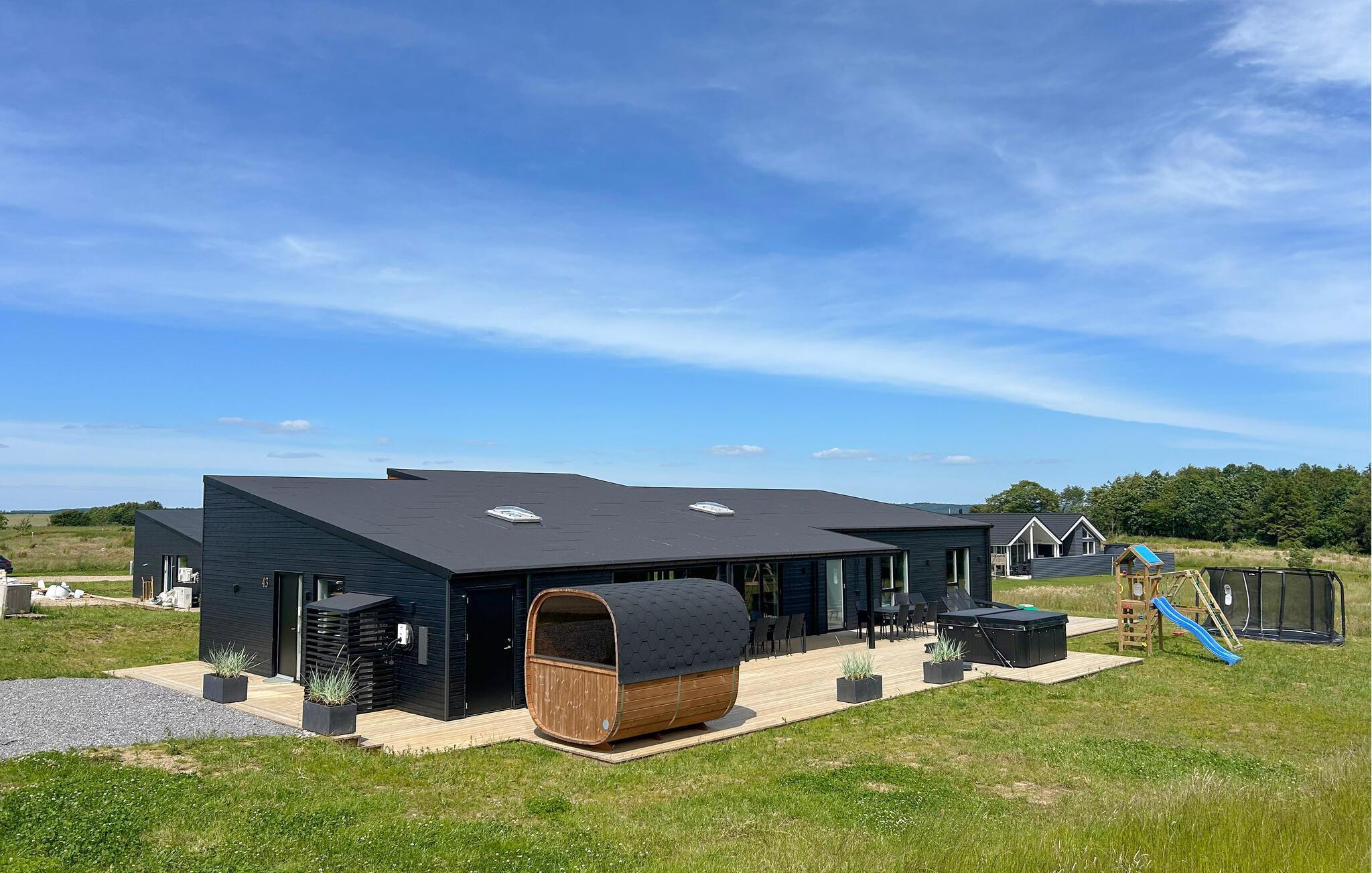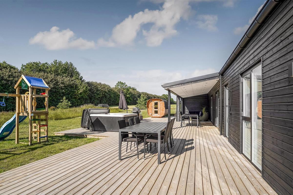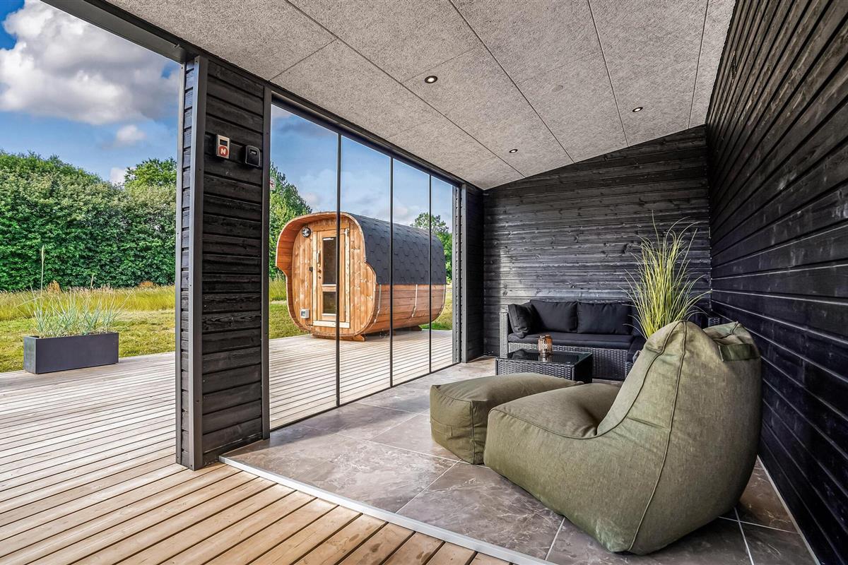Luxe Scandinavisch vakantiehuis met wellness, activiteitenruimte en prachtig terras in Børkop, Denemarken.