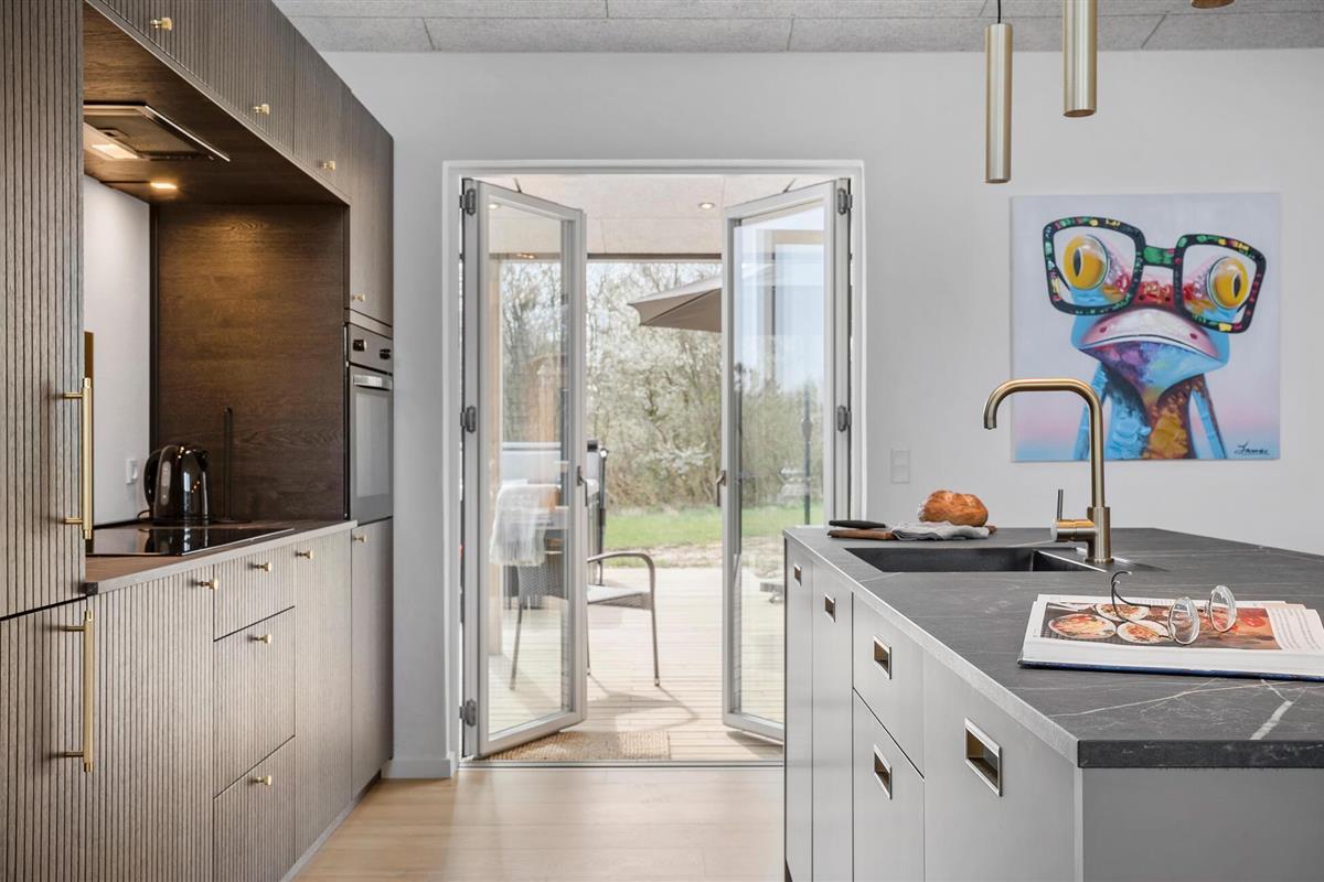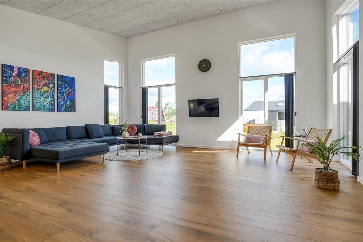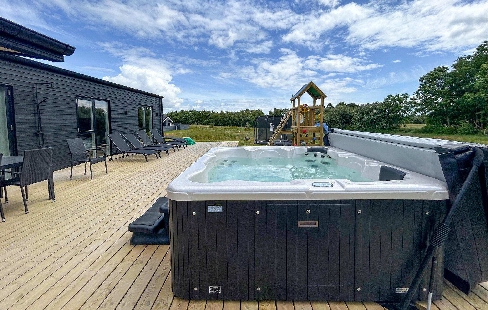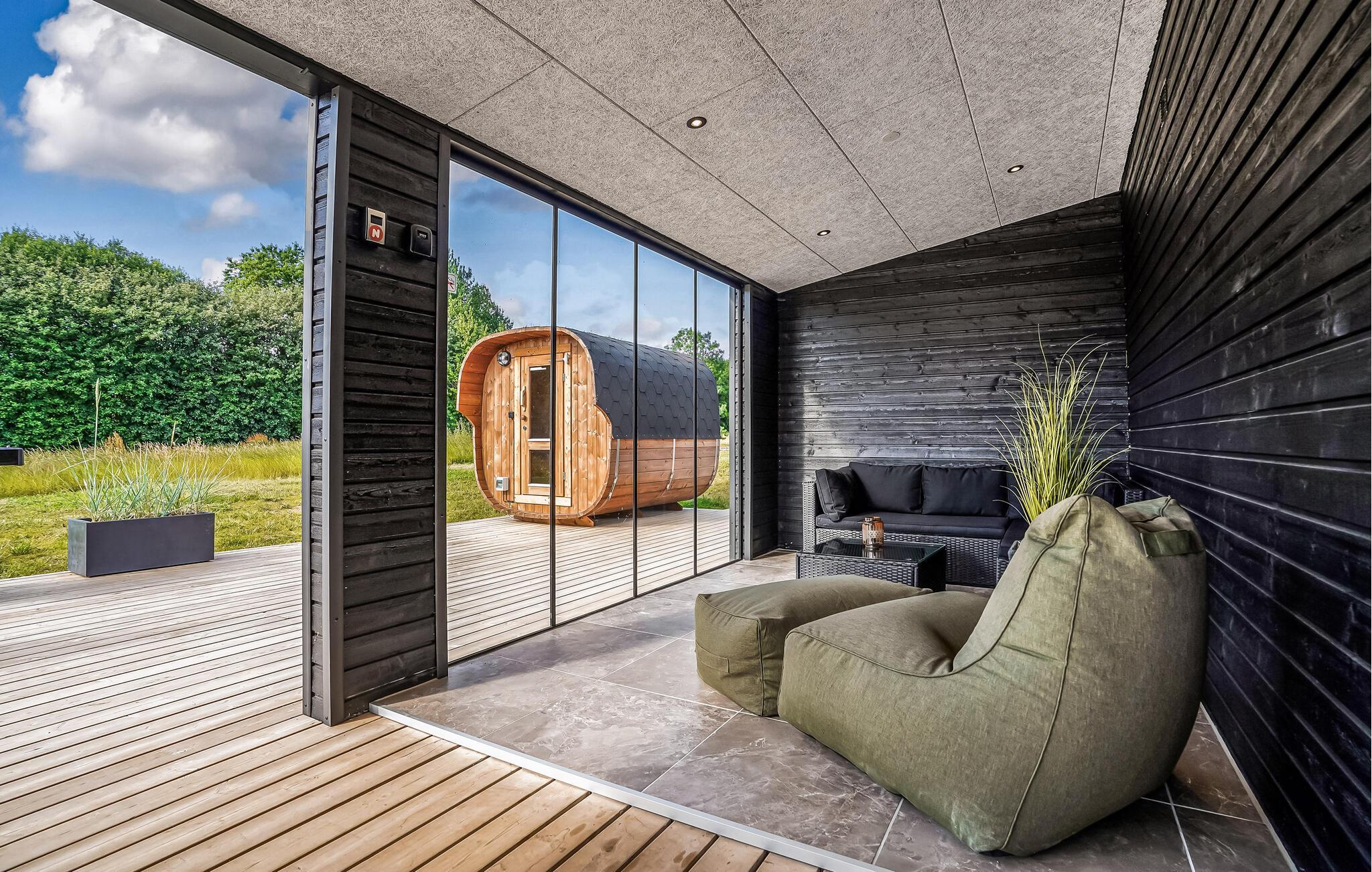 Luxe Scandinavisch vakantiehuis met wellness, activiteitenruimte en prachtig terras in Børkop, Denemarken.