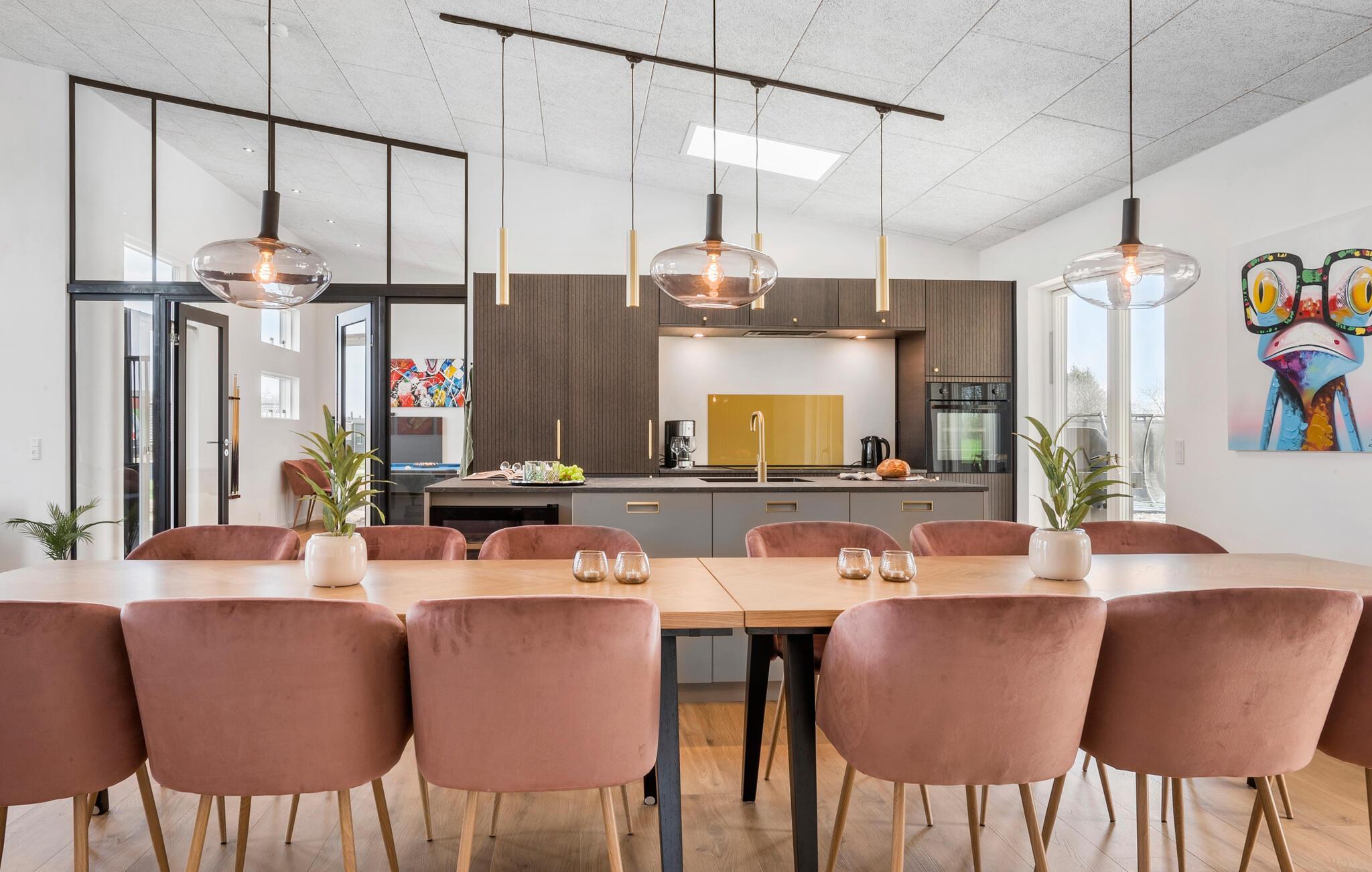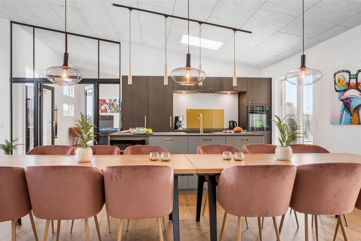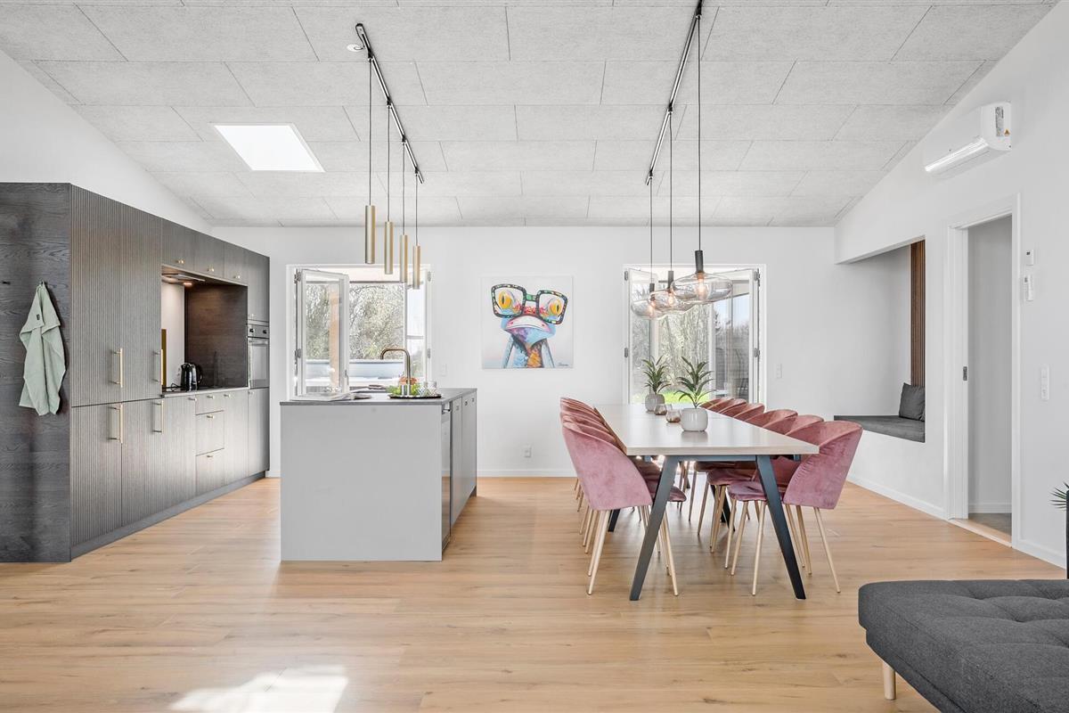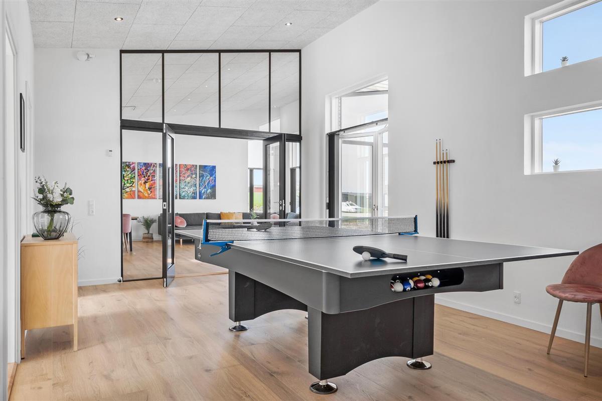 Welkom bij Mørkholt Strand en dit moderne, ruime en hoogwaardige vakantiehuis in Scandinavische stijl. Het huis is een paradijs voor meerdere gezinnen, die kunnen genieten van hun privacy en gezelligheid dankzij de vele, goed uitgeruste kamers. De grote ramen zorgen voor veel natuurlijk licht in de grote woonkamer met een open verbinding naar de keuken. Hier kun je gezellige filmavonden houden met familie of vrienden, je favoriete films streamen of genieten van een goede maaltijd in goed gezelschap. Je vindt ook entertainment in de activiteitenruimte met biljart/pool en tafeltennis, die je volop mogelijkheden biedt voor vrijetijdsactiviteiten tijdens je vakantie.