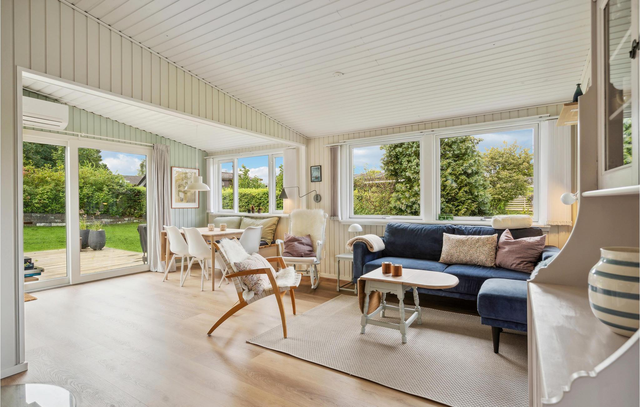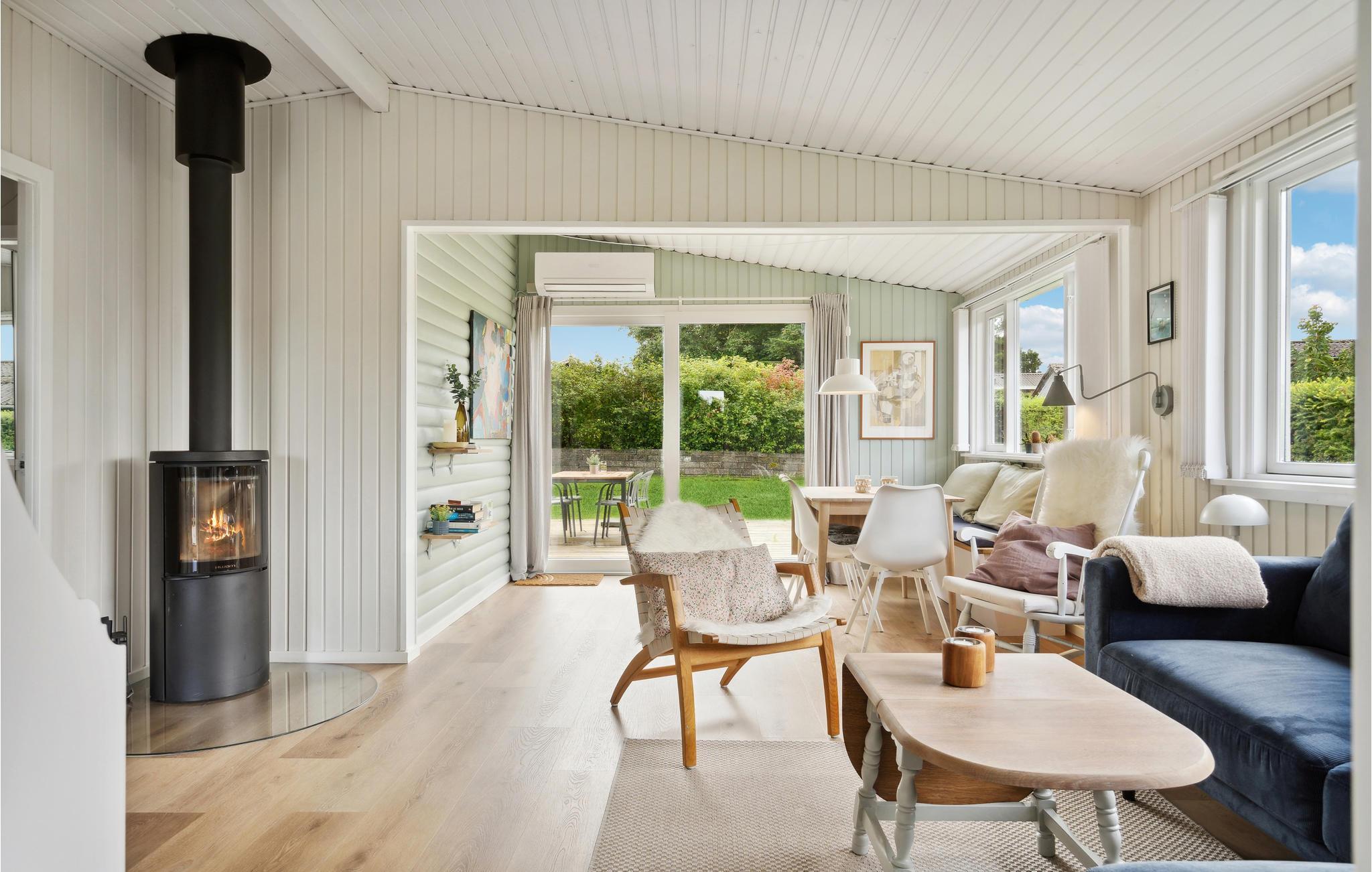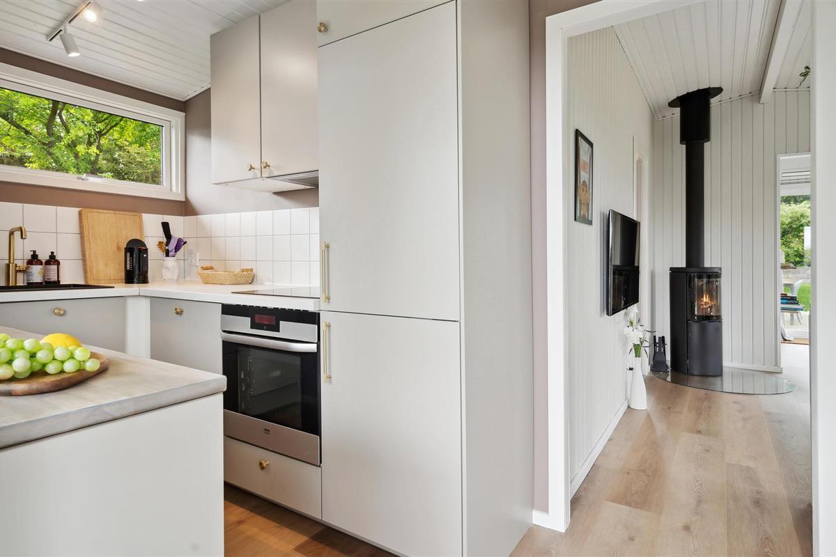 Een goed zwemstrand ligt op slechts een paar minuten lopen van het huis. Het huis heeft een kleine maar goed uitgeruste keuken, een zeer gezellige woonkamer met eethoek en bank om op te ontspannen, en een houtkachel als het 's avonds wat kouder wordt. Er zijn goede terrassen bij het huis, zodat u op mooie zomerdagen van het buitenleven kunt genieten.