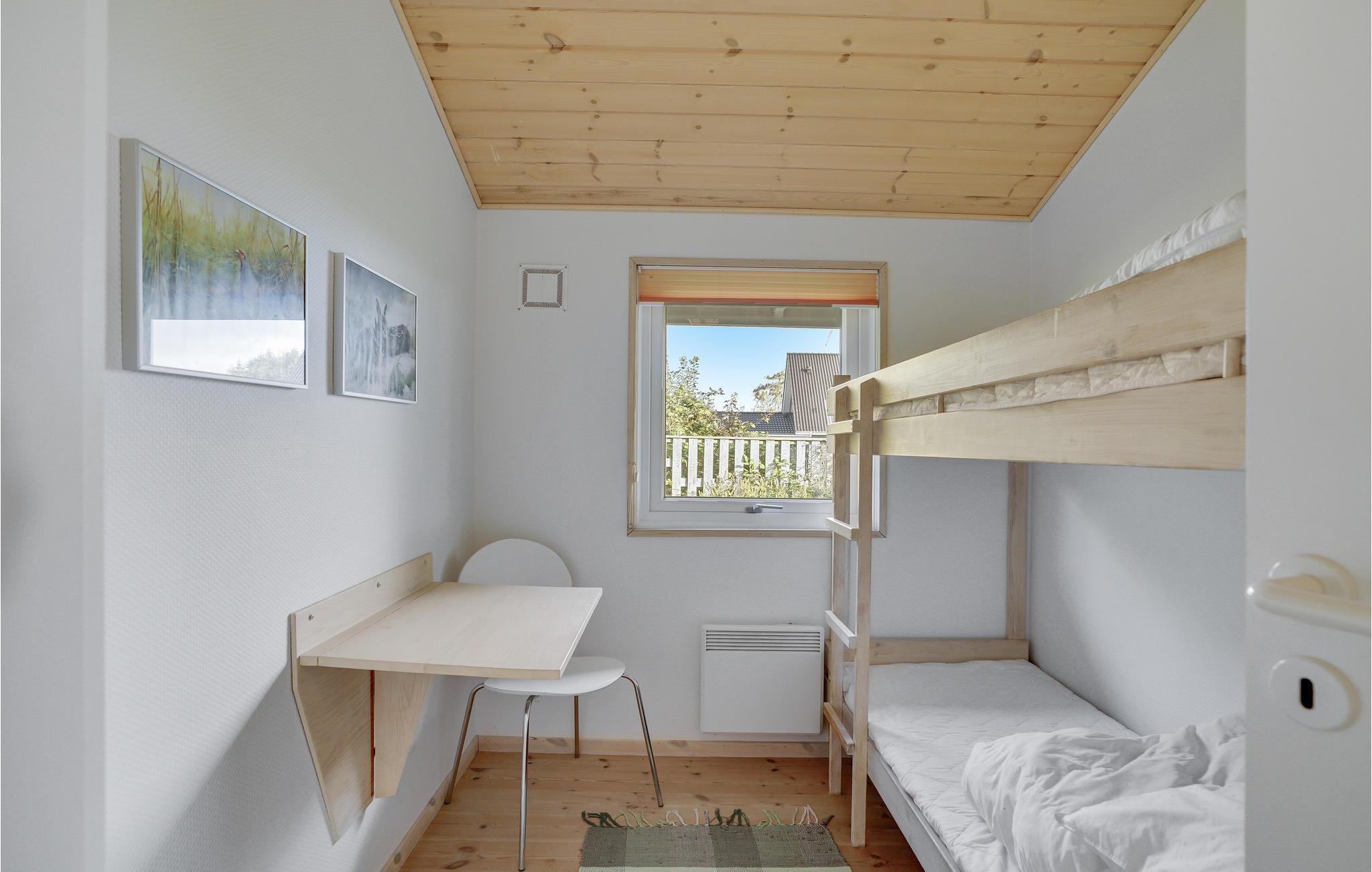 Dit aantrekkelijke vakantiehuis is gelegen in het mooie vakantiegebied bij Hvidbjerg Strand, slechts ongeveer 50 m van het strand met een zwemsteiger en met een fantastisch uitzicht over de monding van het Vejle Fjord. Het bevat 3 goede slaapkamers, een met een tweepersoonsbed, een met 2 eenpersoonsbedden, een met een stapelbed voor 2 kinderen en bovendien een kleine loft, ook een mooie grote badkamer met douche en whirlpool.
