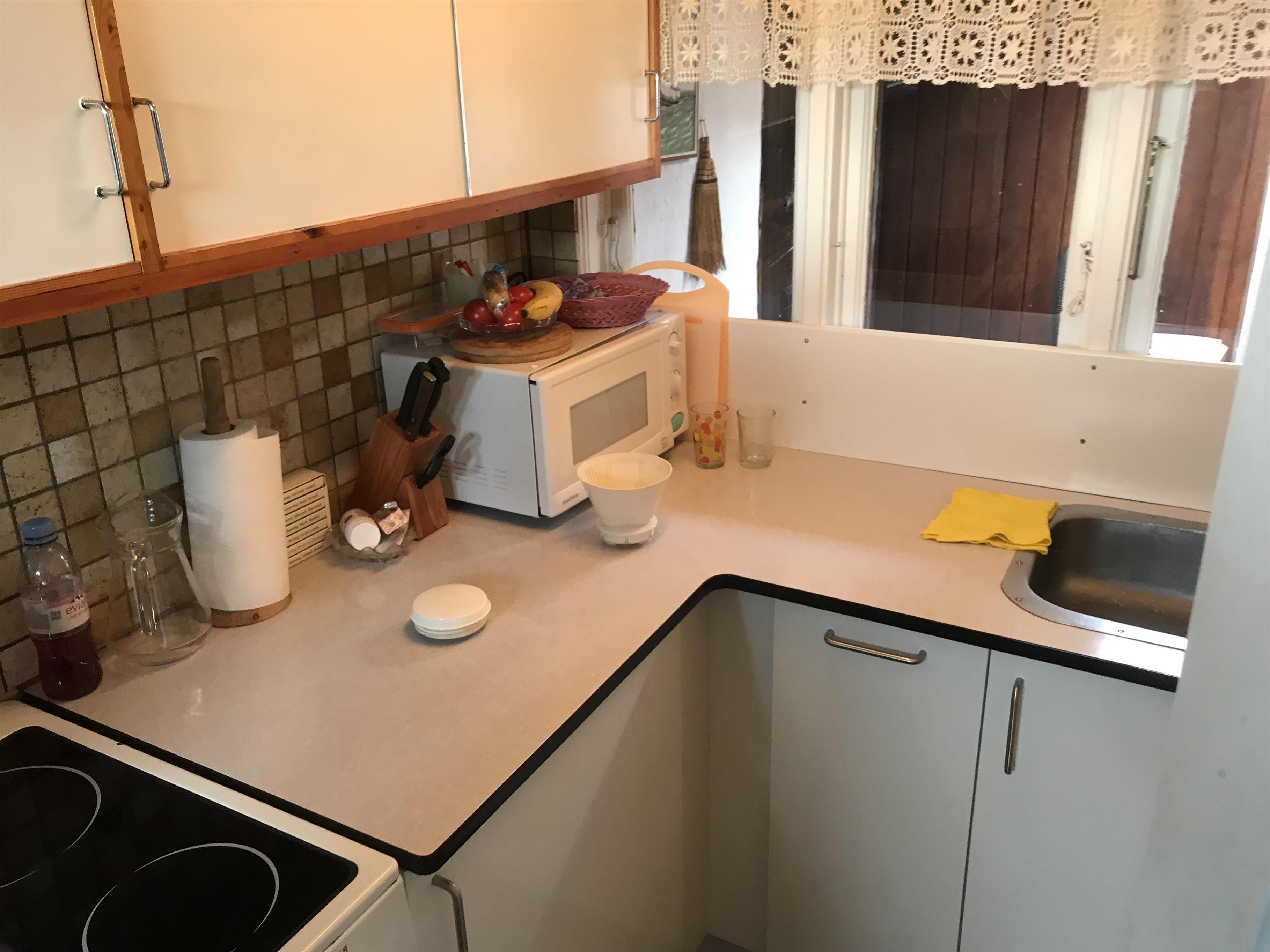 Bedroom with a double bed. The two other sleeping places are in the sofa bed in the living room, so the house is best suited if you are only two.
