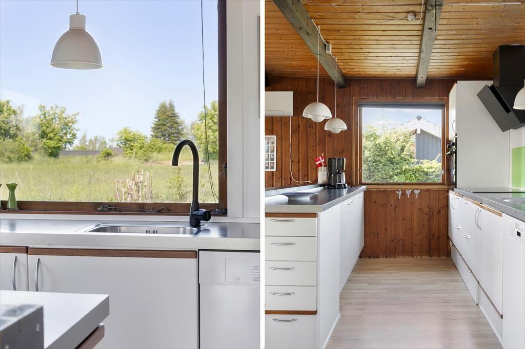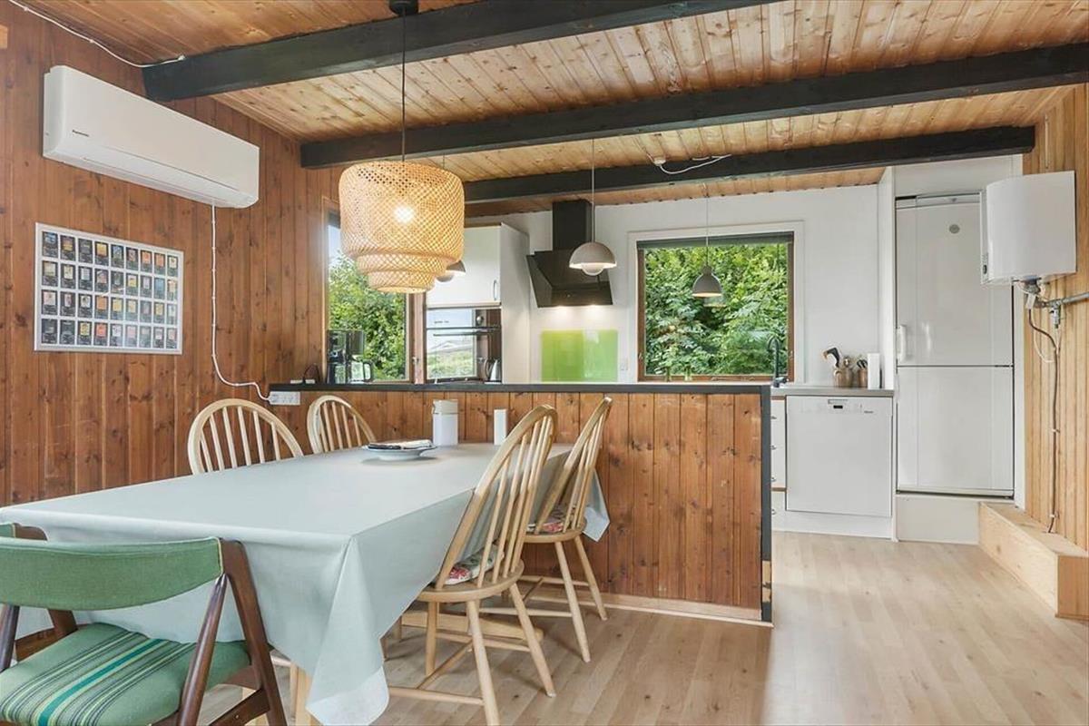 When you step inside the holiday home, you are greeted by a warm atmosphere that immediately makes you feel at home. The interior is simple and cozy, and in the living room, the wood-burning stove gathers the family on cooler evenings, where you can listen to the fire crackle while playing games, watching a good film, or simply enjoying the calm together. The kitchen and living area are naturally connected, creating the perfect space for holiday meals. The windows let in plenty of light and offer a lovely view of the garden, bringing nature close at all times. Everything is designed to make it easy for you to settle in and get into the holiday spirit.