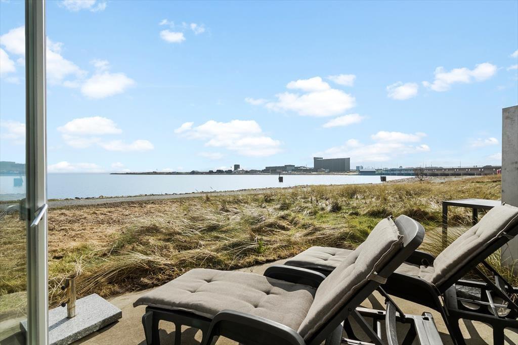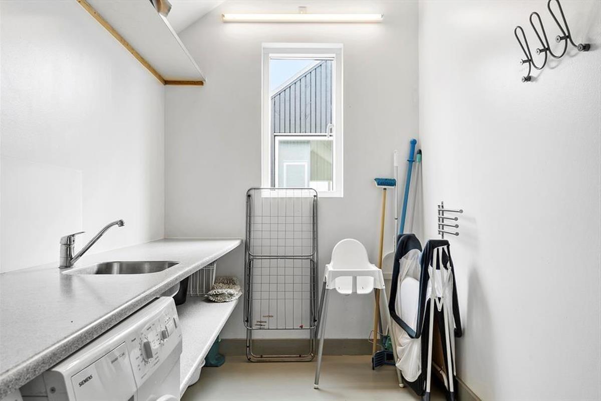 Die atemberaubende Panoramaaussicht auf den Fjord genießen Sie den gesamten Tag hindurch auf der sonnenverwöhnten Südterrasse. Der Innenhof ist angenehm ungestört und windgeschützt und bietet sich für einen Grillabend an. Zum Ferienhaus gehört eine Garage. Das Nebengebäude beherbergt einen Hauswirtschaftsraum, in dem Ihnen eine Waschmaschine, ein Wäschetrockner, eine Gefriermöglichkeit und eine Spüle mit Fischreinigungsplatz zur Verfügung stehen.