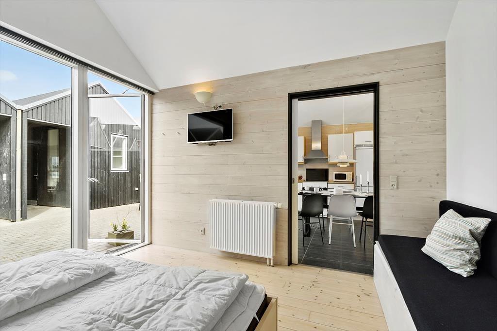 Da dieses Urlaubsdomizil nur wenige Schritte von der großen Schleuse Hvide Sandes trennen, eignet es sich ganz hervorragend für Angler. An der Schleuse konkurrieren Sie mit anderen Anglern und Seehunden um den dicksten Hering und die größte Makrele. Fjordfischer landen täglich ihren Fang im nur wenige Minuten entfernten Tyskerhavn an. Nach einem kurzen Spaziergang erreichen Sie einen Bäcker, einen Schlachter und mehrere Fischgeschäfte. Die Pfade entlang des Fjordufers laden zu Spaziergängen in reizvoller Natur ein. Ans Herz legen möchten wir Ihnen eine Radtour auf den guten Radwegen, die sich durch prachtvolle Heide- und Dünenlandschaft Holmsland Klits schlängeln. In Hvide Sande freuen sich interessante Geschäfte und gute Restaurants auf Ihren Besuch. Gute Surfspots lassen das Herz eines jeden Wassersportler höher schlagen. Badeurlauber wird der langgestreckte, schöne Nordseestrand begeistern.