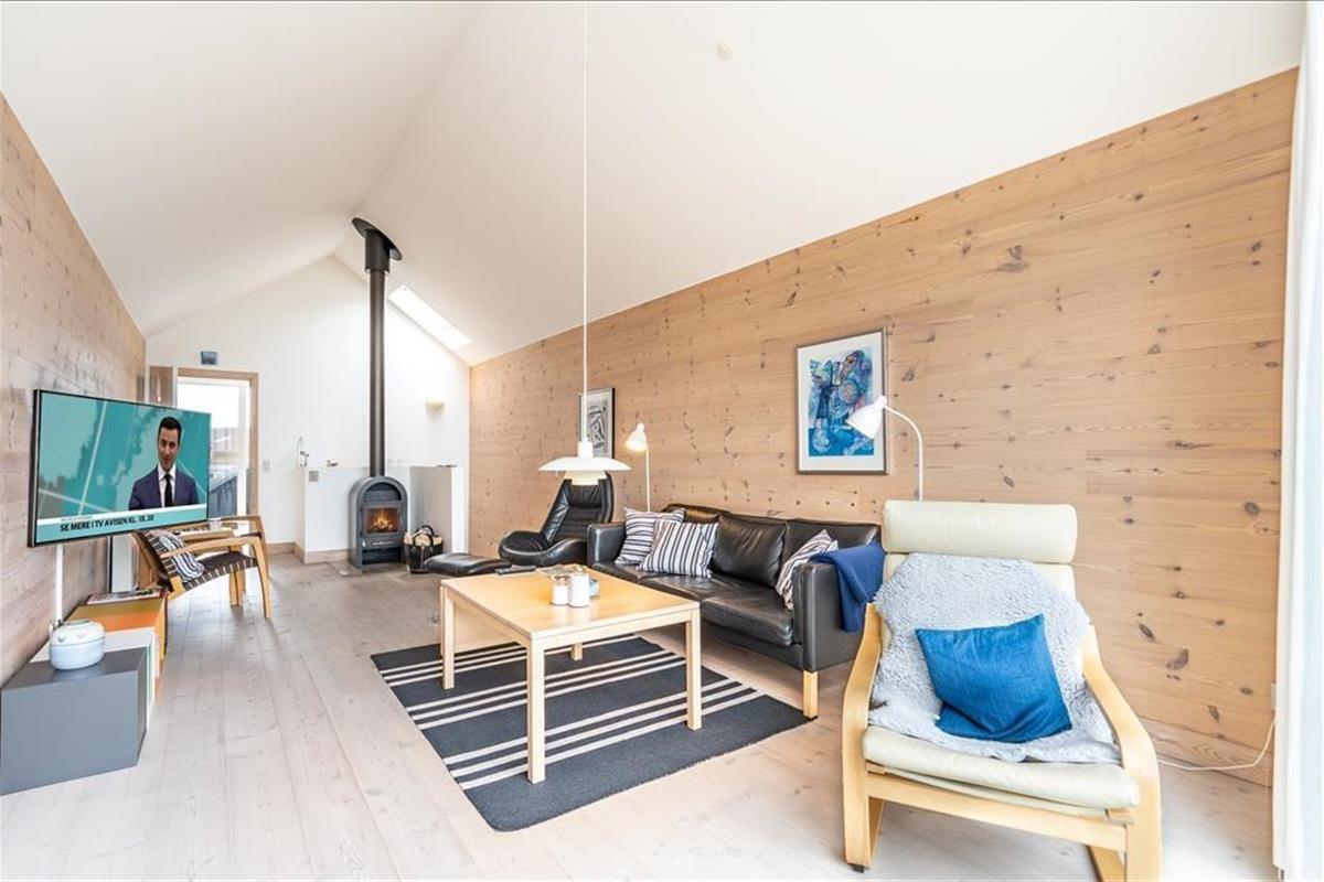 Dieses schöne Ferienhaus besticht mit seiner fantastischen Lage mitten in Hvide Sande - ganz nah an der Schleuse. Im Wohnraum, in einem der Schlafzimmer und auf den Außenarealen genießen Sie den Ausblick über den Fjord.