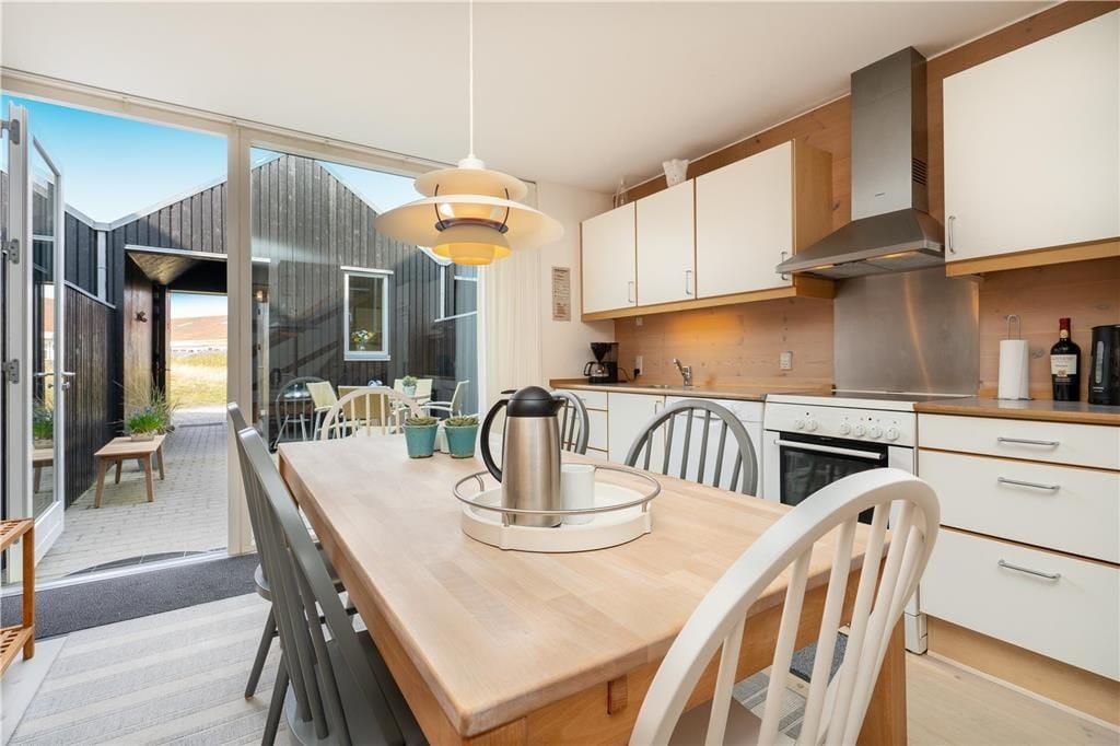Nur wenige Meter trennen dieses Ferienhaus vom Ufer des Ringkøbing Fjords. Nach wenigen Schritten erreichen Sie die Schleuse und die guten Angelplätze am Hafen. Gute Angelmöglichkeiten bieten auf Holmsland Klit auch die Nordsee, der Fjord und mehrere Put & Take-Angelseen. Praktischerweise verfügt dieses Ferienhaus über einen Fischreinigungsplatz und eine Gefriertruhe. Hvide Sandes Zentrum ist nach einem kurzen Spaziergang erreicht. Im Ort können Sie durch kleine Geschäfte bummeln, einkaufen und sich in einem der guten Restaurants kulinarisch verwöhnen lassen. Hinter dem Ortskern freuen sich die wunderbaren Sandstrände, die gut zu Fuß oder per Fahrrad erreichbar sind, auf Ihren Besuch. Längere Erkundungstouren, die Sie in die reizvolle Natur Holmsland Klits führen, sollten Sie sich keinesfalls entgehen lassen.