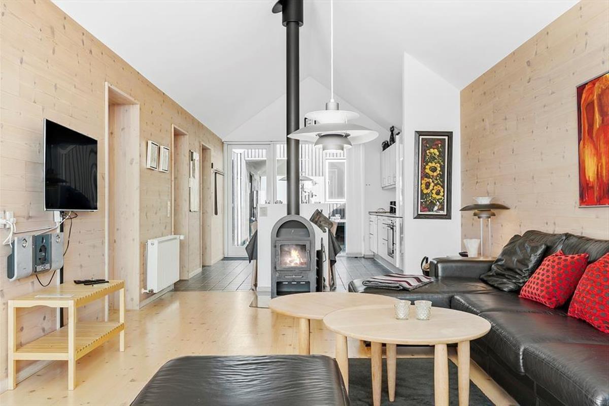 Gezellig stadshuis in Hvide Sande met sauna, houtkachel en uitzicht op de fjord, vlakbij strand en supermarkt.