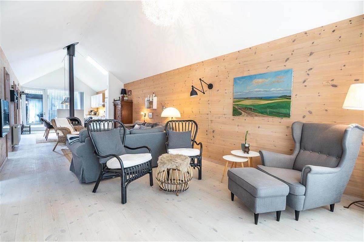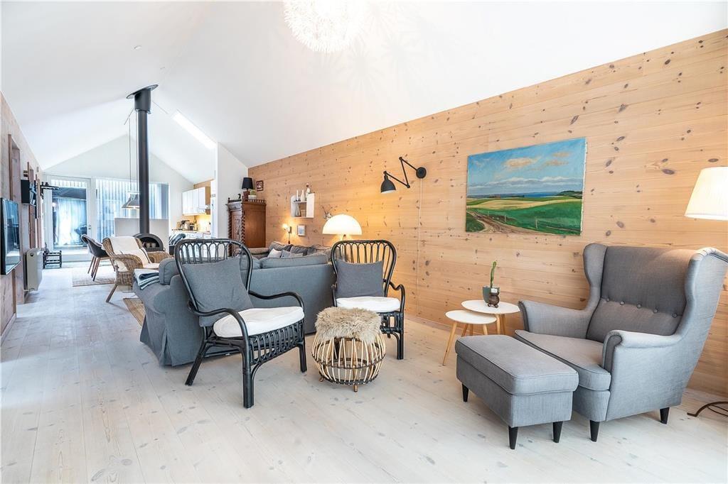 Sie genießen die Wahl zwischen zwei guten Aufenthaltsplätzen. Wunderbar ungestört und ruhig geht es auf dem geschlossenen Innenhof zwischen Haus und Garage zu. Wenn Sie den Blick auf den Fjord genießen möchten, machen Sie es sich auf der Südterrasse gemütlich, die nur wenige Meter abseits des Ufers liegt.