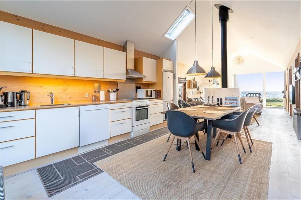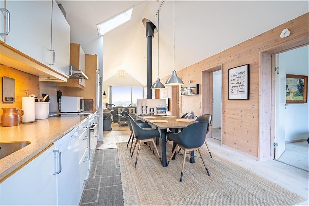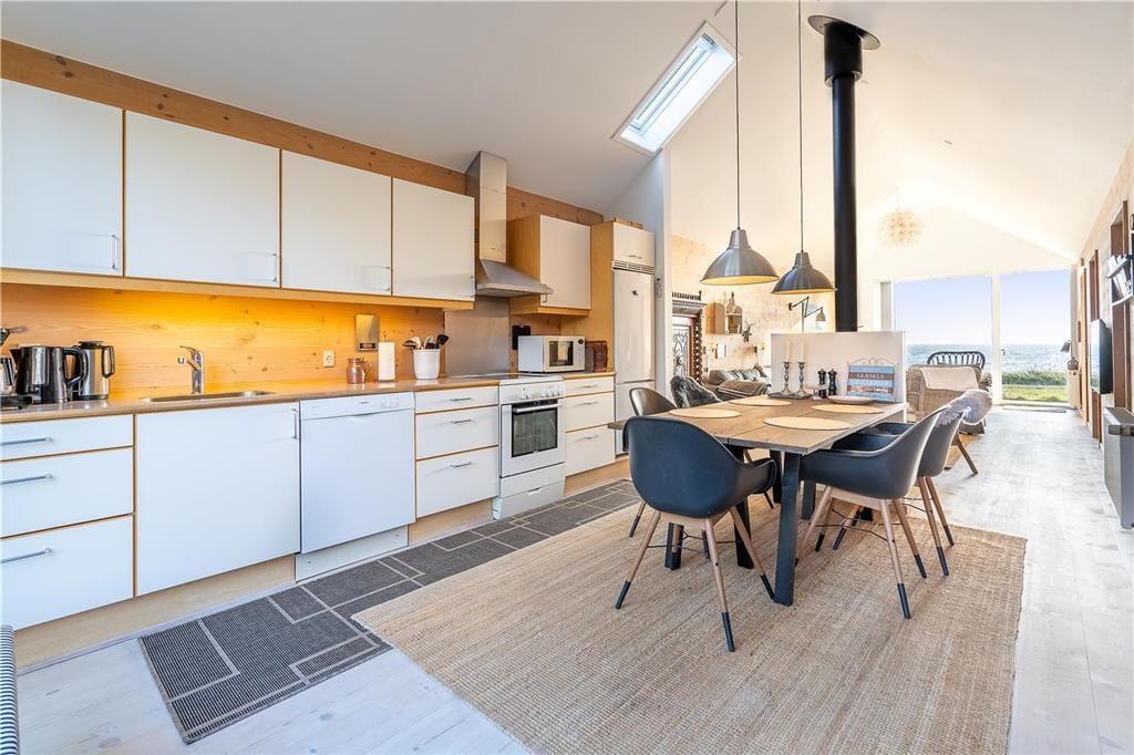 Die tolle Panoramaaussicht ist nicht der einzige Vorzug dieses reizvollen Mietobjekts. Das Haus verwöhnt mit einem Whirlpool und einer Sauna, die sich auf die beiden Badezimmer verteilen. Hinzu gesellen sich ein Kaminofen, ein Flachbild-TV und weiche Sitzmöbel im Wohnraum. Mit anderen Worten werden Sie sich hier in stimmungsvollem Ambiente bestens erholen und entspannen. Der Wohnraum ist offen mit der Küche verbunden, in der Sie auf gute Arbeitsbedingungen und einen gemütlichen Essplatz treffen. Das größte der insgesamt drei Schlafzimmer begeistert - ebenso wie der Wohnraum - mit einem imposanten Fjordblick. Angler dürfen sich auf das praktische Nebengebäude freuen, in dem ihnen ein Fischreinigungsplatz mit einer Spüle zur Verfügung steht.
