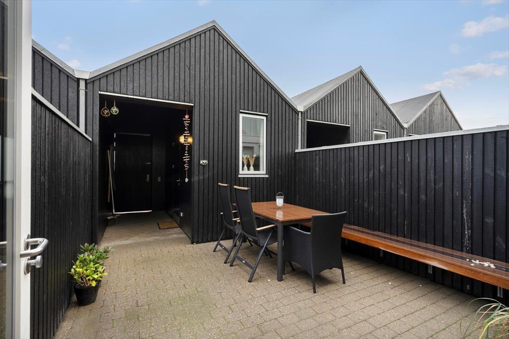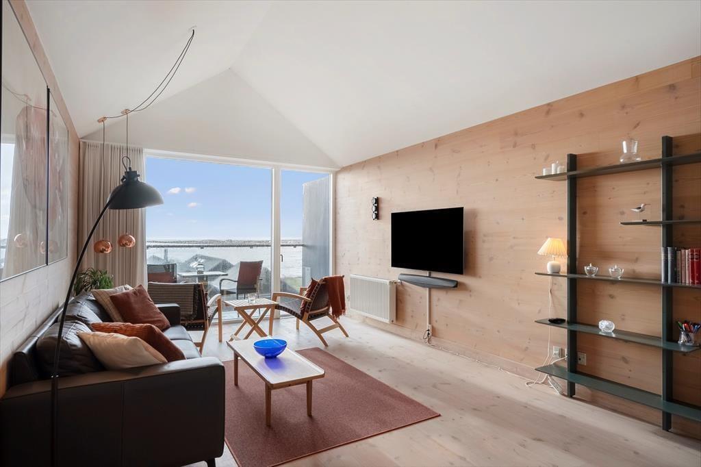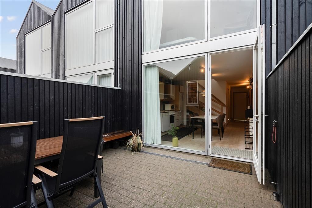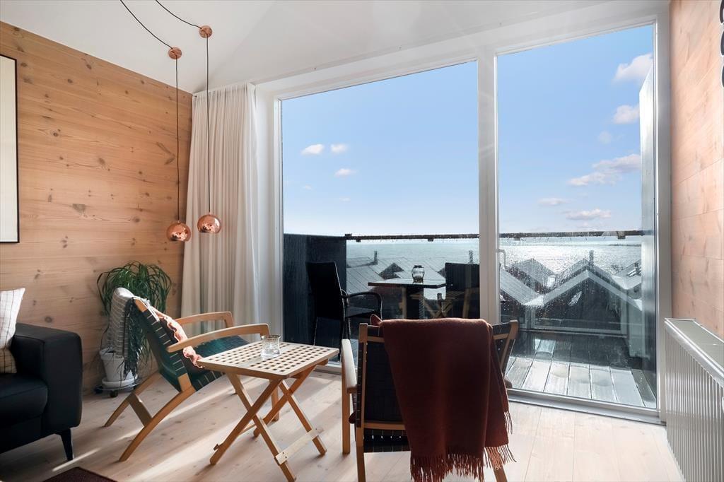 Draußen bietet das Ferienhaus mehrere schöne Aufenthaltsbereiche. Hier wird es dir leicht gemachen, den Urlaub im Freien zu genießen. Vom Schlafzimmer im Erdgeschoss hast du Zugang zu einer nach Süden ausgerichteten Terrasse, wo der Tag mit einer Tasse Kaffee in der Morgensonne anfangen kann. Ein abgeschlossener Innenhof zwischen Küche und Wirtschaftsraum sorgt für private Umgebung – perfekt für ein Mittagessen unter freiem Himmel oder einfach nur um in den Außenmöbeln zu Relaxen. Hier könnt Ihr die Sommertage und milde Abende genießen, während die Kinder sicher dort spielen. Ein Stückchen Fjordblick begleitet dich überall draußen, doch oben vom Balkon aus hast du wirklich 1. Klasse Ausblick über das maritime Treiben an der Schleuse.