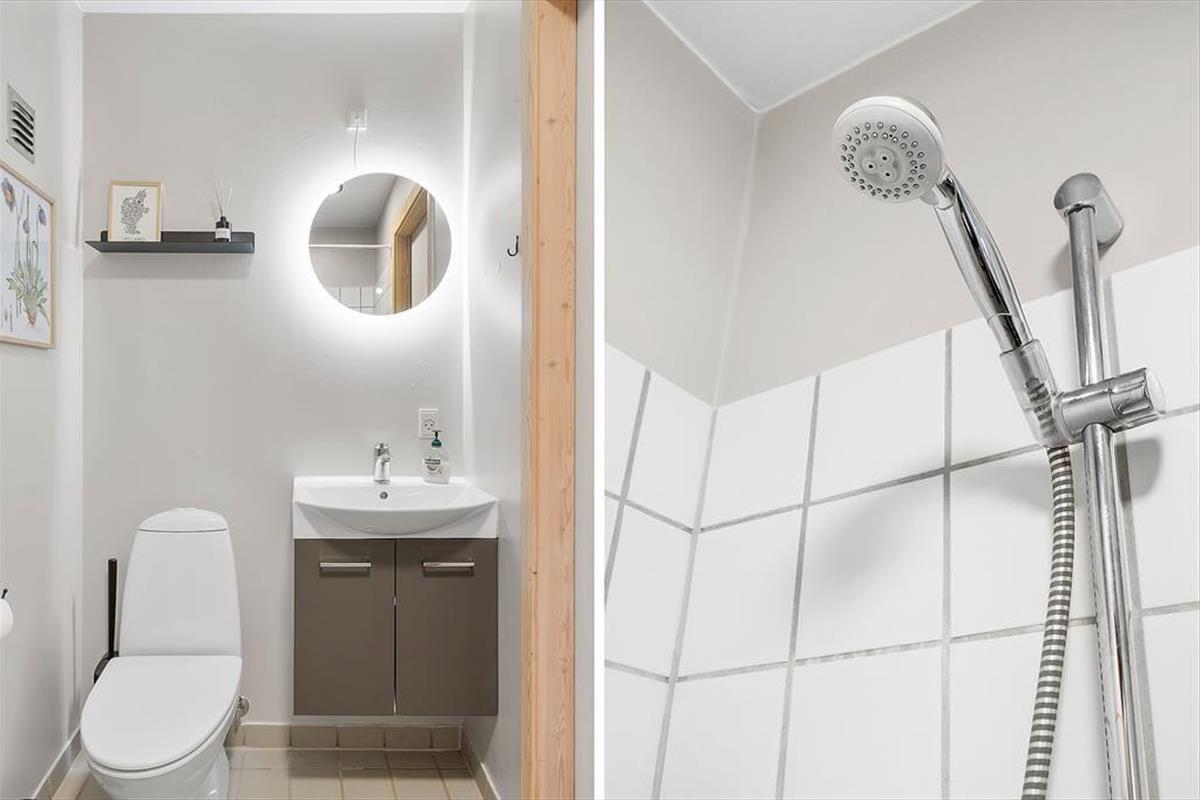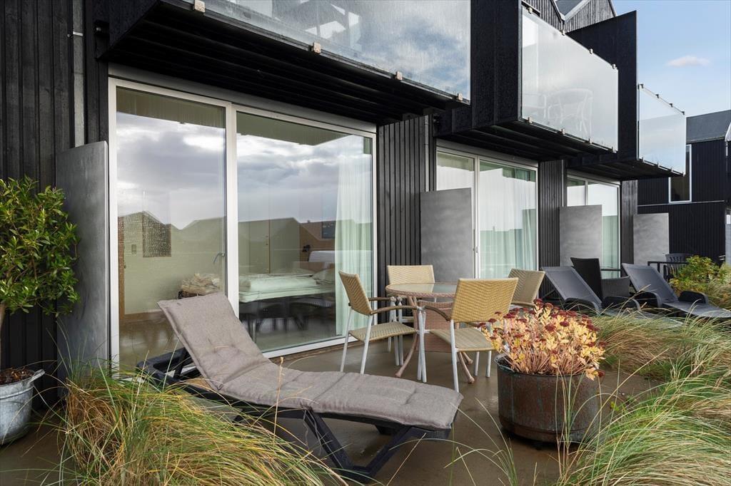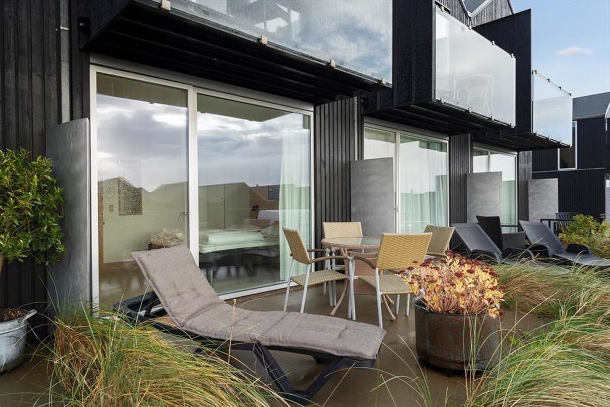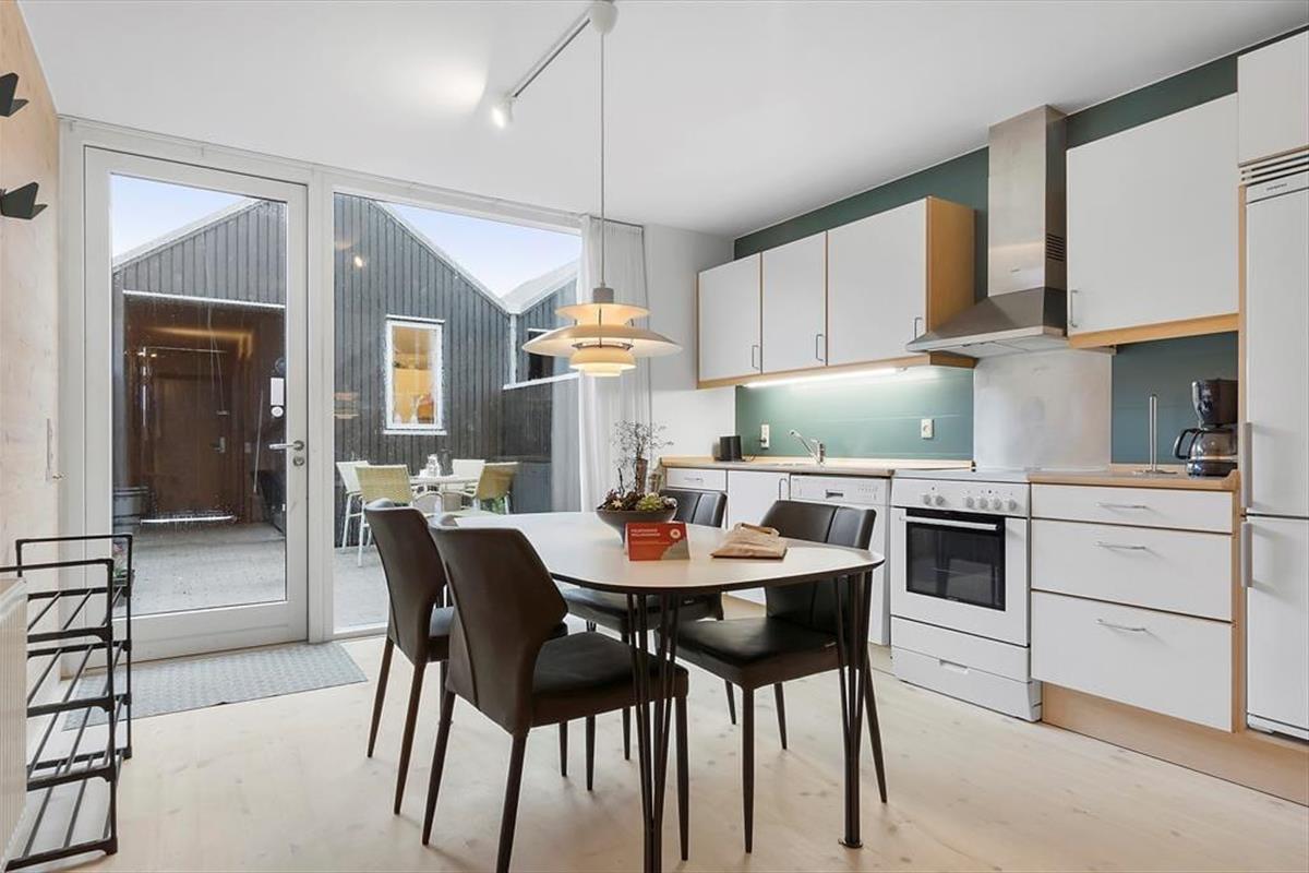 Draußen bietet das Ferienhaus mehrere schöne Aufenthaltsbereiche. Hier wird es dir leicht gemachen, den Urlaub im Freien zu genießen. Vom Schlafzimmer im Erdgeschoss hast du Zugang zu einer nach Süden ausgerichteten Terrasse, wo der Tag mit einer Tasse Kaffee in der Morgensonne anfangen kann. Ein abgeschlossener Innenhof zwischen Küche und Wirtschaftsraum sorgt für private Umgebung – perfekt für ein Mittagessen unter freiem Himmel oder einfach nur um in den Außenmöbeln zu Relaxen. Hier könnt Ihr die Sommertage und milde Abende genießen, während die Kinder sicher dort spielen. Ein Stückchen Fjordblick begleitet dich überall draußen, doch oben vom Balkon aus hast du wirklich 1. Klasse Ausblick über das maritime Treiben an der Schleuse.