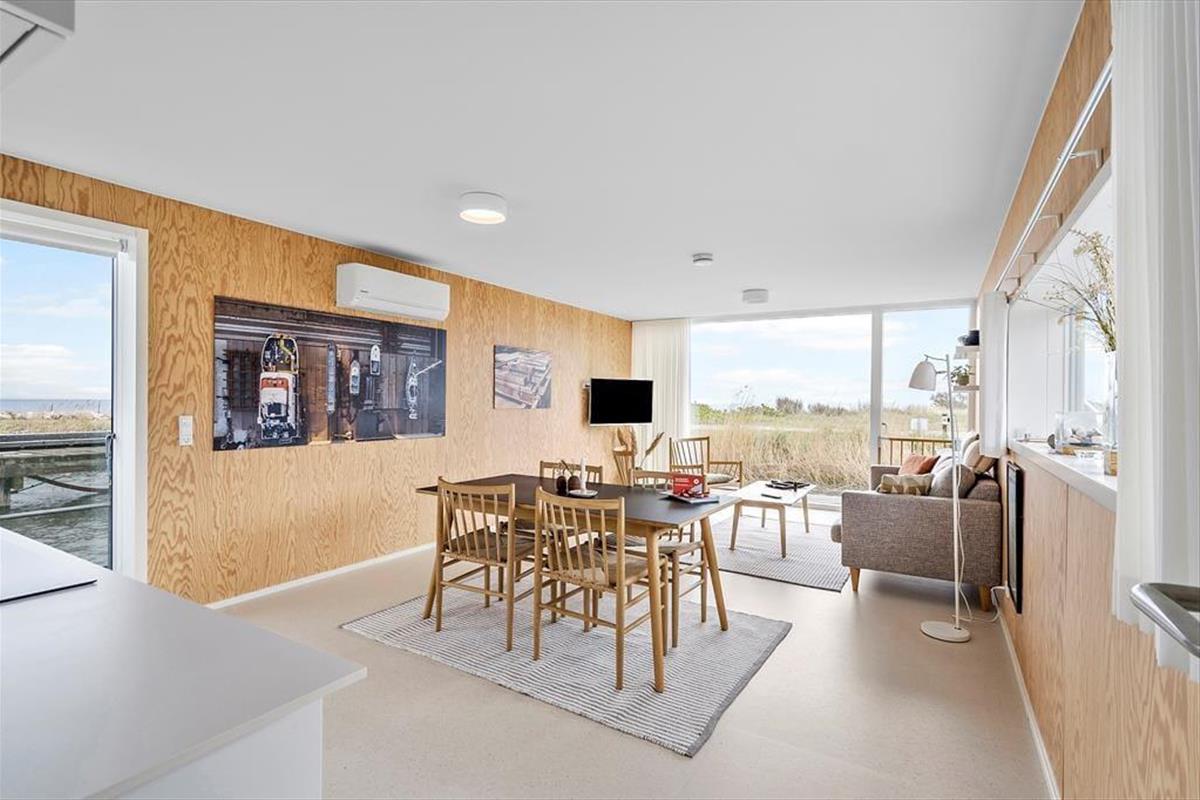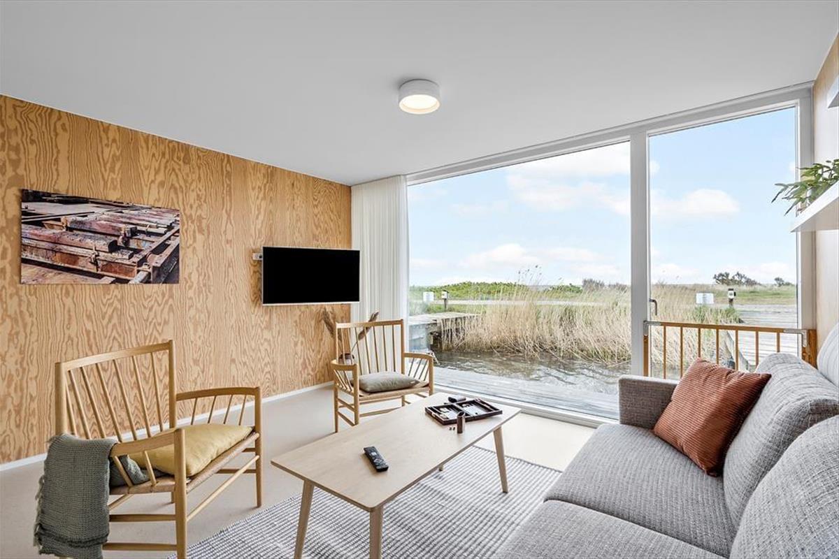 Das Hausboot liegt am Rande des Hafengebietes in Mamrelund, direkt am Ufer des Ringkøbing Fjords. Hier erleben Sie hautnah, wie die Fjordfischer auslaufen und mit ihrem täglichen Fang heimkehren. Mit ein wenig Glück beobachten Sie vor dem Hausboot Wildvögel und sogar Seehunde. Für Spaziergänge bietet sich der Fjordstien an, der entlang des Ufers verläuft. Alternativ spazieren Sie in den Ortskern und weiter an die Nordsee und Hvide Sandes reizvollen Sandstrand. Marmelund befindet sich in der Nähe der interessanten Geschäfte und schönen Restaurants des Hafens und der hervorragenden Angelplätze. Meer und Fjord bestechen durch fantastische Surfspots. Fahrradfahrern können wir schöne Touren durch die hübsche Dünen- und Heidelandschaft Holmsland Klits wärmstens empfehlen.