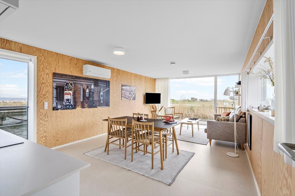 Wunderschöne Sonnenaufgänge, der Duft frischen Fjordwassers und ein seichter Wellenschlag. All Ihre Sinne werden von der Natur stimuliert, wenn Sie sich für dieses moderne Hausboot aus dem Jahr 2020 entscheiden. Das Boot liegt fest verankert an einem der besten Bootsplätze Mamrelunds und verwöhnt mit einem reizvollen Blick über den Ringkøbing Fjord. Hvide Sandes Ortskern ist fußläufig erreichbar.