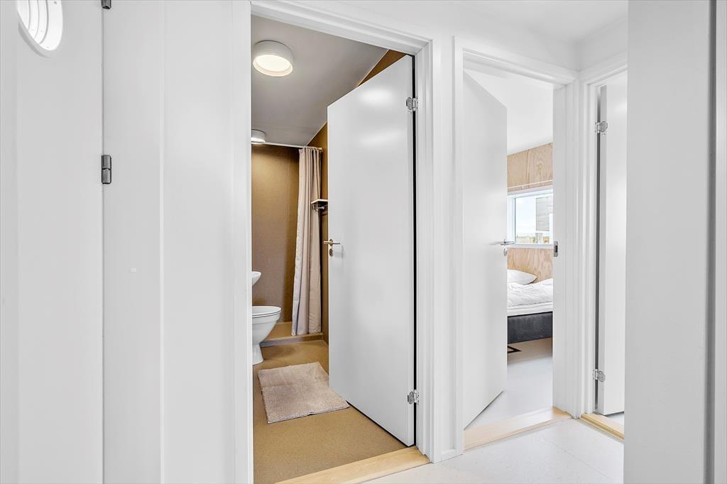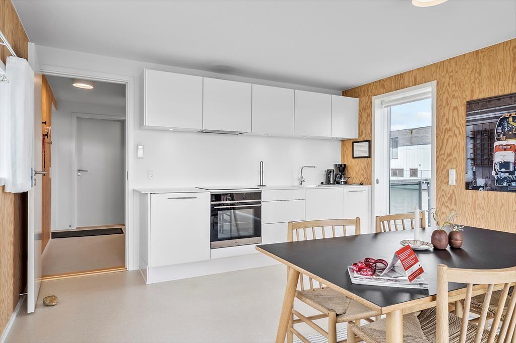 Freuen Sie sich bereits jetzt auf unvergessliche Urlaubstage! Selbst wenn Sie dieses Hausboot den gesamten Urlaub nicht verlassen, erwarten Sie außergewöhnlich schöne, andersartige Naturerlebnisse. Es ist etwas ganz Besonderes, während des Urlaubs komplett von Wasser umgeben zu sein, von den seichten Wellen in den Schlaf geschaukelt zu werden und durch die Fenster einen herrlichen Blick über den Fjord und den Hafen zu genießen. Der schöne Aufenthaltsraum des Bootes, der durch eine stilvolle Möblierung und einem Flachbild-TV inklusive Chromecast geprägt wird, setzt sich offen aus dem Wohnzimmer und der Küche zusammen. Dank der sich laufend verändernden Aussicht, die das nach Osten gerichtete Panoramafenster offenbart, werden Sie den Fernseher allerdings nicht sehr häufig nutzen. Der kleine Eingangsbereich verfügt über Schrankfläche. Ein Badezimmer mit einer Dusche ist vorhanden. Die Schlafplätze für insgesamt vier Personen verteilen sich auf zwei Schlafzimmer.