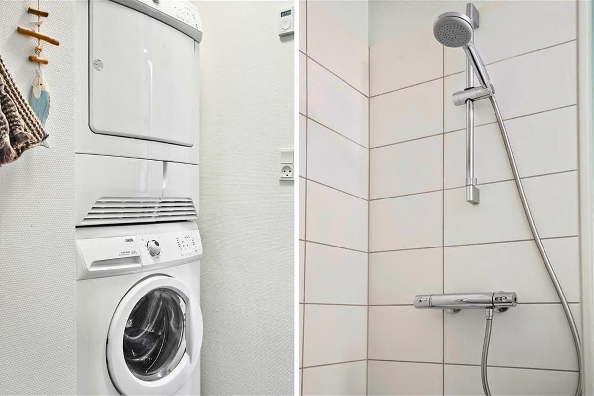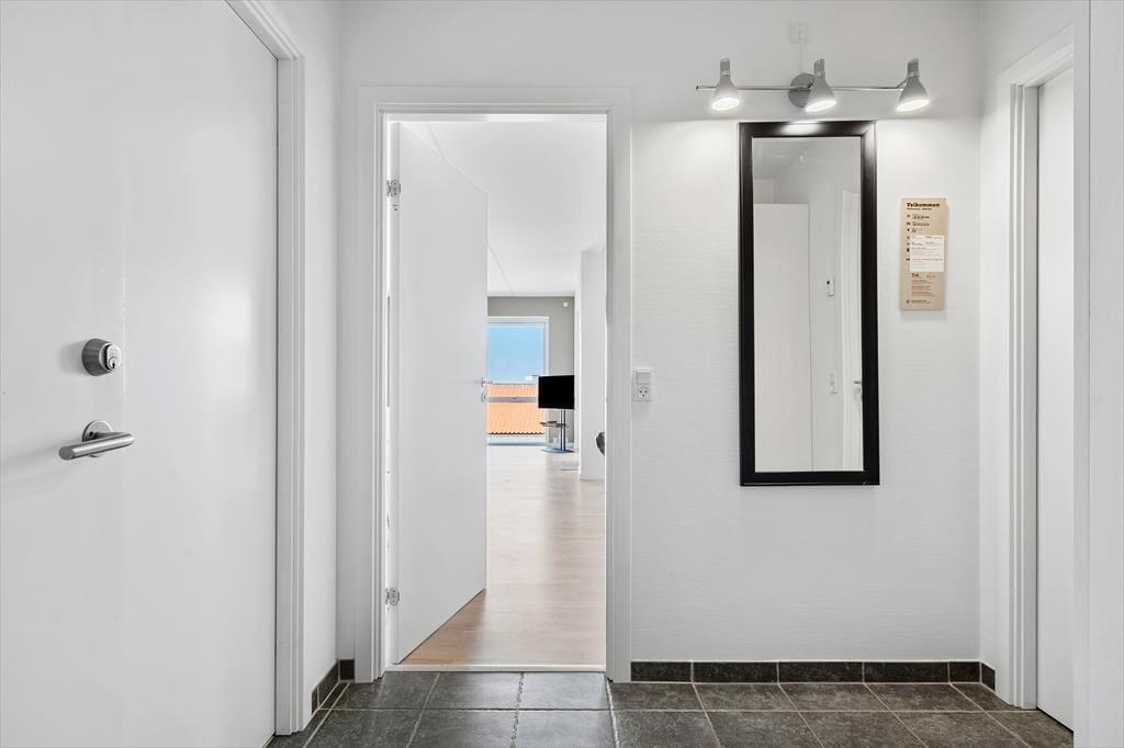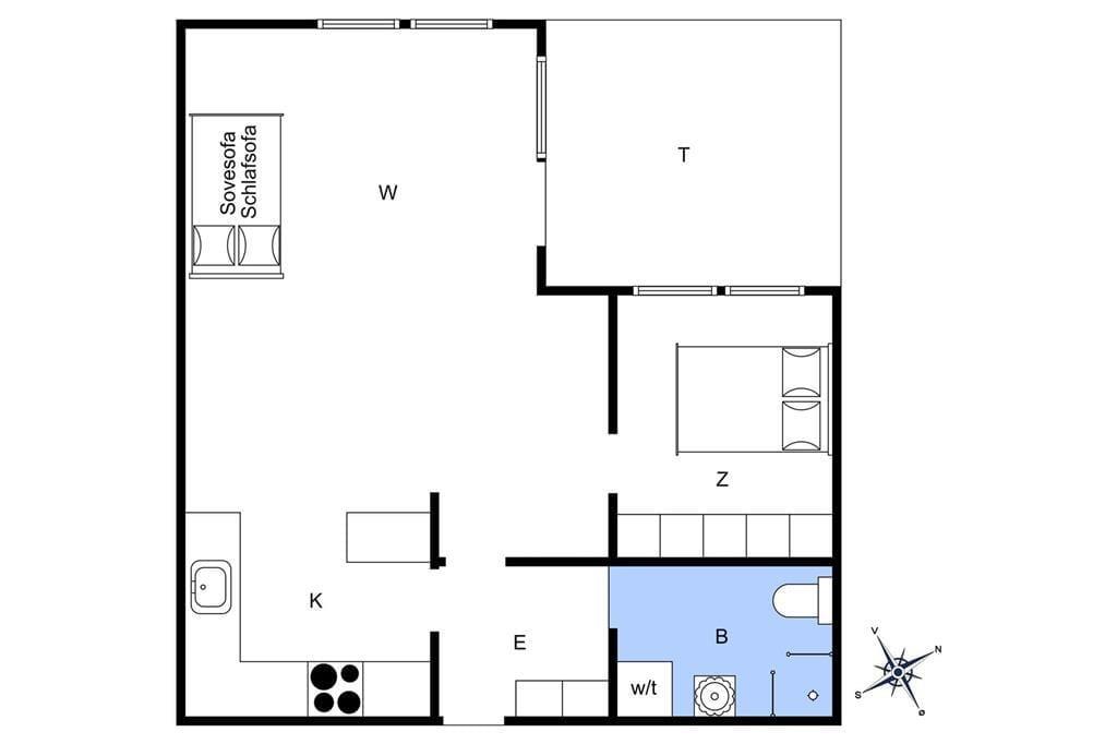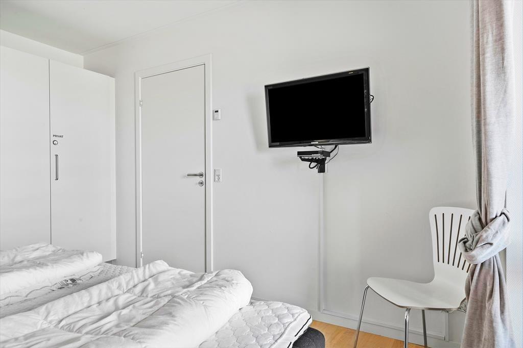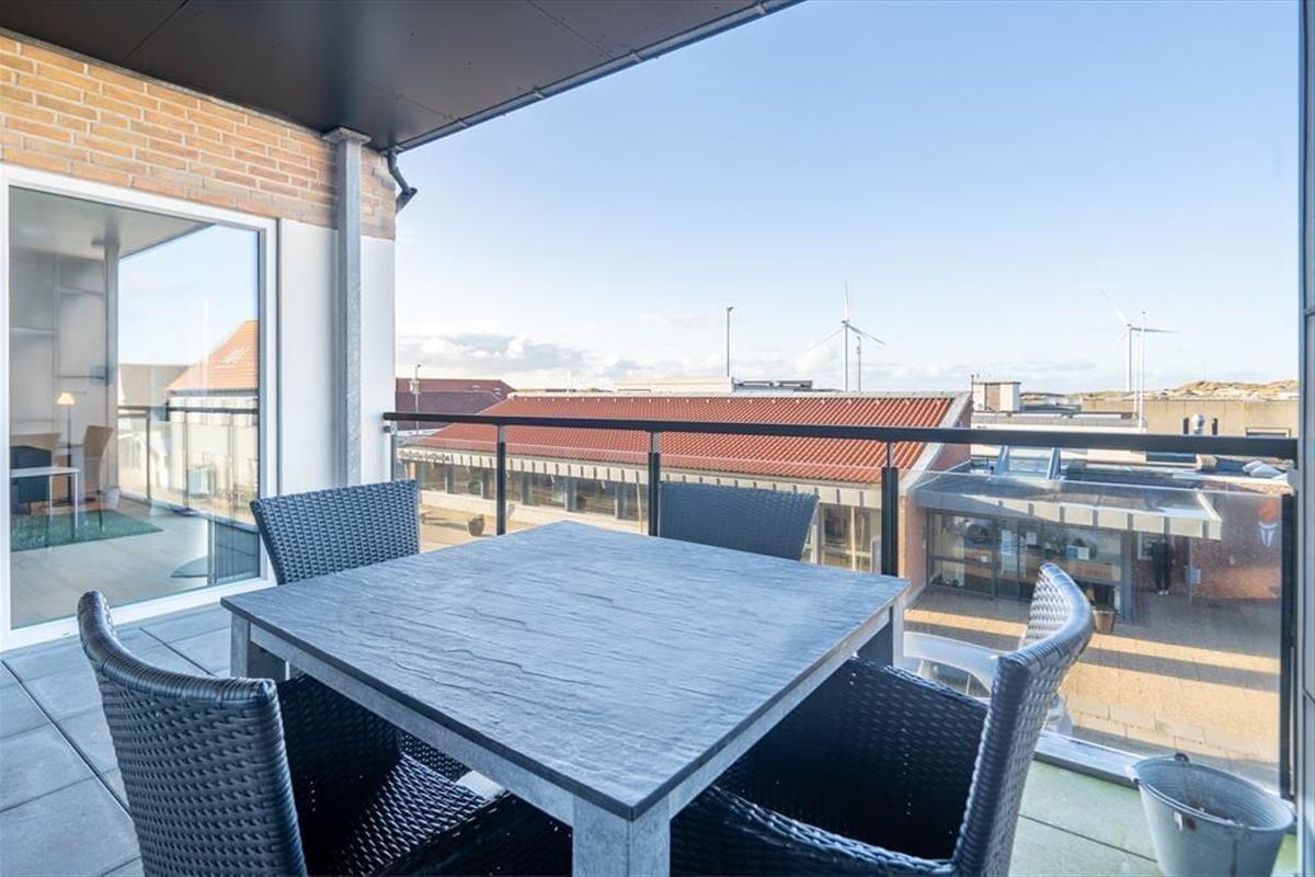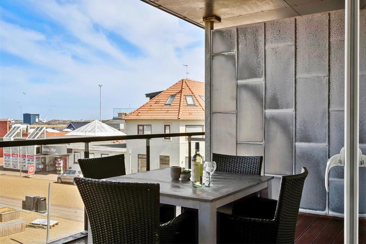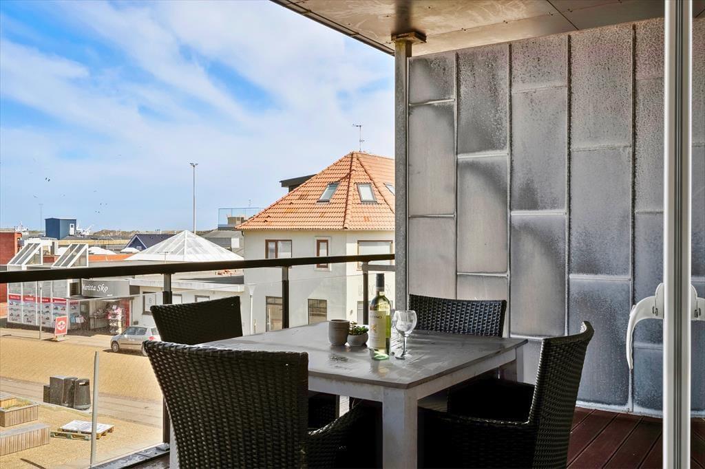 Die Ferienwohnung befindet sich im ersten Stock eines gepflegten Gebäudes. Ein Fahrstuhl ist vorhanden. Im Eingangsbereich treffen Sie auf eine Garderobe. Das Badezimmer überzeugt mit einer Fußbodenheizung, einer Duschnische und einer praktischen Waschsäule. Die Schlafplätze verteilen sich auf einen Schlafraum mit einem Fernseher, einem Ausgang auf die Terrasse und zwei Schlafplätzen und auf ein Schlafsofa für zwei Personen im Wohnraum. Küche und Wohnraum bilden einen offenen Aufenthaltsbereich. In der gut ausgestatteten Küche können Sie gemeinsam die Mahlzeiten zubereiten, die Sie anschließend am Esstisch servieren. Den Abwasch erledigt der Geschirrspüler. Zu gemütlichen Stunden laden die guten Polstermöbel und der Fernseher ein. Zur Wohnung gehört ein Abstellraum mit einem Tiefkühler. Von Ende März bis Ende Oktober können Mieter dieser Wohnung kostenfrei den Fischreinigungsplatz beim Campingplatz von Hvide Sande nutzen.