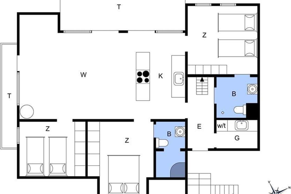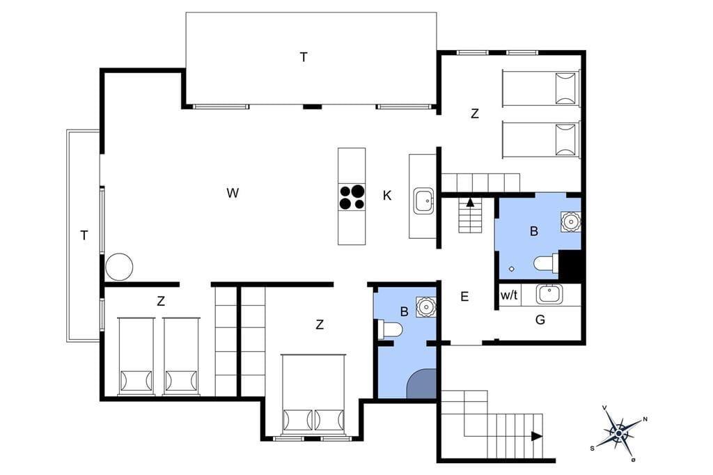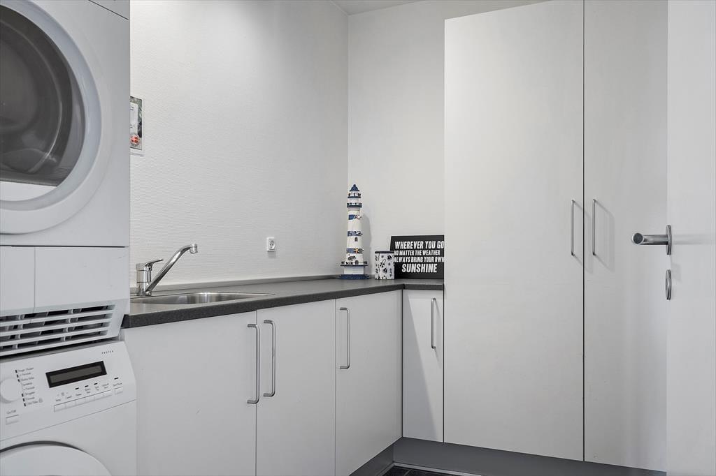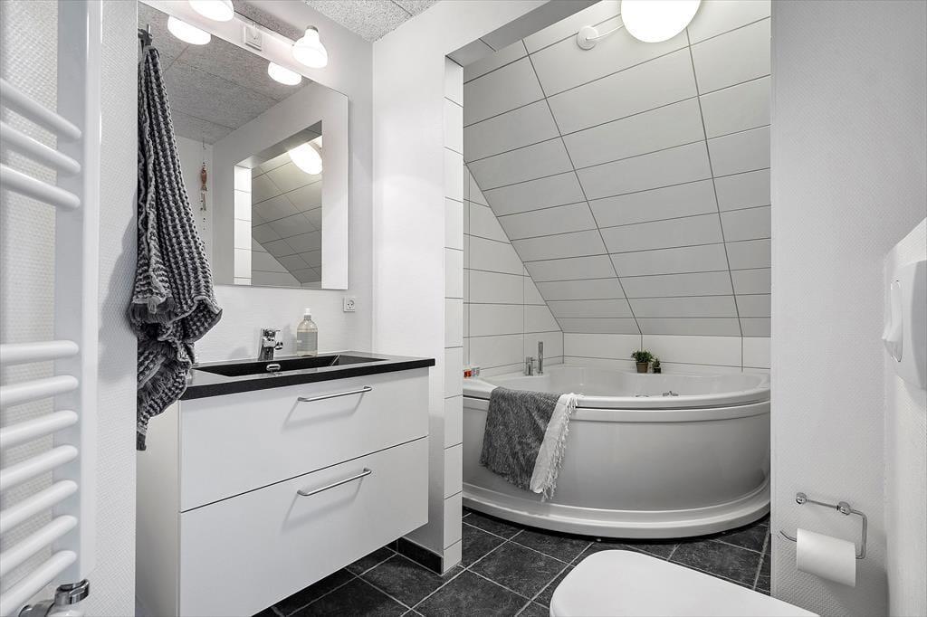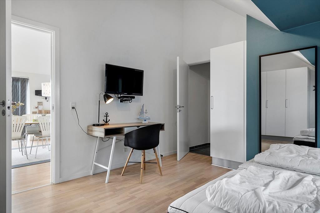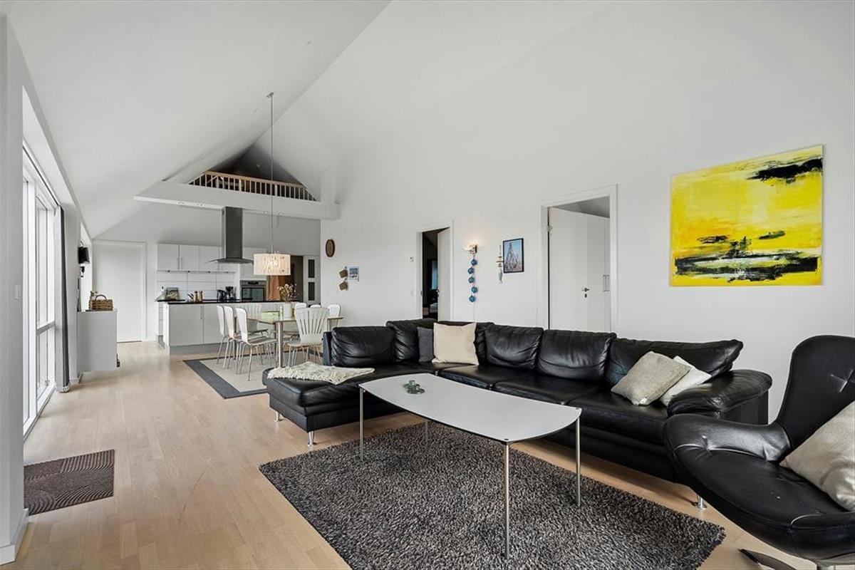 Die Ferienwohnung befindet sich in einem ansprechenden Gebäudekomplex mit Fahrstuhl. Im Wohnungsinneren empfangen Sie große, helle und luftige Räume. Die Schlafplätze für sechs Personen verteilen sich auf drei gute Schlafräume. Ein eingezogener Hängeboden bietet weiteren Platz. Die Wohnung umfasst zwei Badezimmer, die beide mit einer Dusche ausgestattet sind. In einem der Bäder sorgt ein Whirlpool für optimale Entspannung. Vom Eingangsbereich gelangen Sie in einen praktischen Hauswirtschaftsbereich mit einer Spüle samt Arbeitsplatte und einer Waschsäule ausgestattet ist. Am meisten beeindrucken wird Sie der Aufenthaltsbereich, der aufgrund der Panoramafenster einen Ausblick über Hvide Sande und die Nordsee gewährt. Der Aufenthaltsbereich vereint den Wohnraum und die offene Küche in ansprechender Weise. Die Küche mit einer Kücheninsel ist gut ausgestattet und macht das gemeinsame Zubereiten der Mahlzeiten zum reinen Vergnügen. Im Wohnraum laden ein Esstisch, weiche Polstermöbel und ein Fernseher zu geselligen Runden und gemütlichen Stunden ein. Zur Wohnung gehört ein Abstellraum mit einem Tiefkühler. Von Ende März bis Ende Oktober können Mieter dieser Wohnung kostenfrei den Fischreinigungsplatz beim Campingplatz von Hvide Sande nutzen.