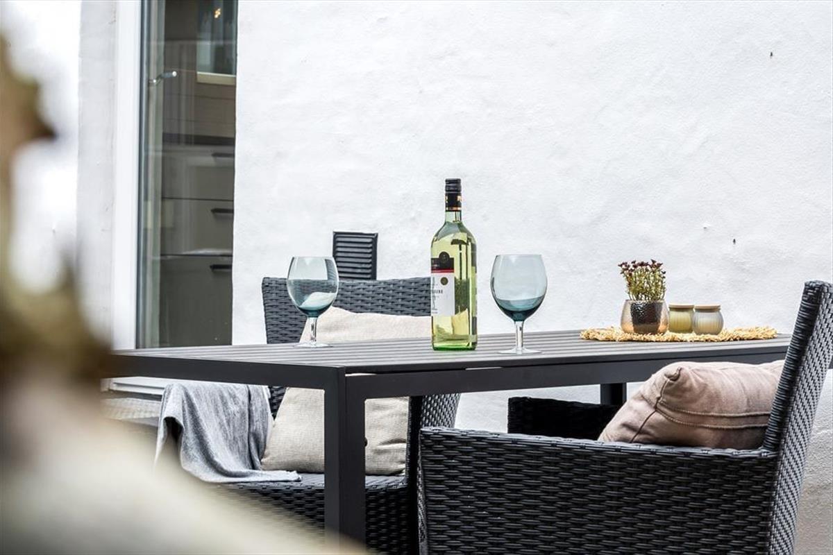 Der gemütliche Innenhof ist der perfekte Ort, um mit einem erquickenden Kaffee in den Tag zu starten oder gemütlich mit einem Glas Wein die Abende zu schließen. Hier kannst du in aller Ruhe verweilen, von frischer Meeresluft umgeben und dem Rufen der Möwen in der Ferne. Mit den vorhandenen Gartenmöbeln kannst du es dir richtig bequem machen und entspannte Stunden unter freiem Himmel verbringen. Außerdem gibt es einen offenen Schuppen im Hof, in dem du dein Fahrrad im Trockenen untergestellt hast.