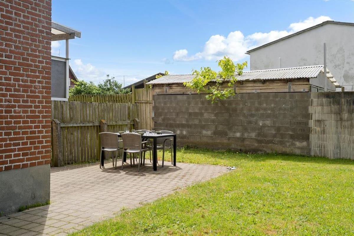 Wenn die Sonne hoch am Himmel über Hvide Sande steht, ist es verlockend einen großen Teil des Urlaubs draußen an der frischen Luft zu verbringen - es ist schön, auf der Terrasse der Wohnung zu sitzen oder auf dem Rasen zu spielen. Die Außenbereiche des Hauses sind so aufgeteilt, dass der erhöhte Balkon und der Vorgarten zur Erdgeschosswohnung gehören, während der umzäunte hintere Garten Ihnen zur Verfügung steht. Die Einfahrt und ein Schuppen werden von den beiden Einheiten gemeinsam genutzt. Im Garten stehen Ihnen Gartenmöbel und Liegestühle zur Verfügung. Wenn Sie im Schatten eines Sonnenschirms sitzen oder Ihr Abendessen auf dem Holzkohlegrill zubereiten möchten, ist auch das möglich.