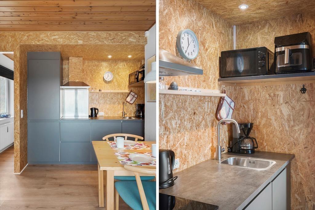 Es erwartet dich eine gemütlich und gut eingerichtete Einliegerwohnung auf 36 m2 und hier hast du alles, was du für einen angenehmen Aufenthalt benötigst. Der offene Wohnbereich kombiniert Wohnraum und Küche - schnell kannst du ein leckeres Frühstück zubereiten und los geht’s in den Tag. Die Einrichtung ist schlicht, aber funktional; die großen Fenster lassen viel Tageslicht herein und sorgen für eine lichte Atmosphäre. Und nach einem langen Tag an der frischen Seeluft kannst du es dir mit einem guten Buch oder einem Film auf dem Sofa gemütlich machen. Die Wohnung beinhaltet eigenes Bad mit Dusche und im Schlafraum findest du über das Doppelbett auch einen Kleiderschrank zur Aufbewahrung. Im Keller stehen dir Wasch- und Trockenmöglichkeiten zur Verfügung – richtig schön, immer wieder frische Handtücher und trockene Kleidung für einen weiteren Tag voller Erlebnisse zu haben.