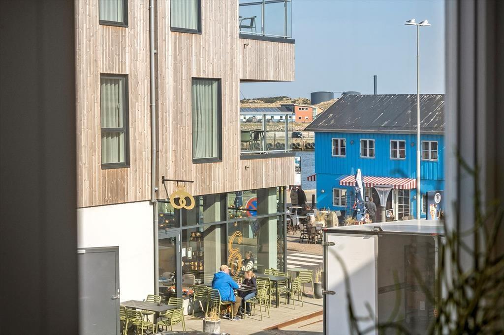 Im Erdgeschoss der Immobilie befinden sich ein Friseursalon und ein Lifestyle-Laden, und in den umliegenden Straßen reihen sich spannende Fachgeschäfte aneinander. Die Restaurants bieten alles, vom schnellen Imbiss bis zum köstlichen Gourmet-Menü, und die Fischhändler der Stadt bieten eine große Vielfalt an frischen und geräucherten Köstlichkeiten aus dem Meer. An der Schleuse können Sie Ihre Angel auswerfen und Ihr eigenes Abendessen fangen, oder Sie genießen die maritime Atmosphäre der Stadt bei einem Bier vom Fass am Kai. Für Aktivurlauber bietet Holmsland Klit eine schöne Landschaft mit guten Wander- und Radwegen. Die beiden Surfspots auf der Fjordseite und das Gebiet bei Sydmolen, wo man auf der Nordsee surfen und SUP'en kann, machen Hvide Sande zu einem Paradies für Wassersportler, aber man kann natürlich auch einfach am Strand entspannen, sich sonnen und ein kühles Bad nehmen.