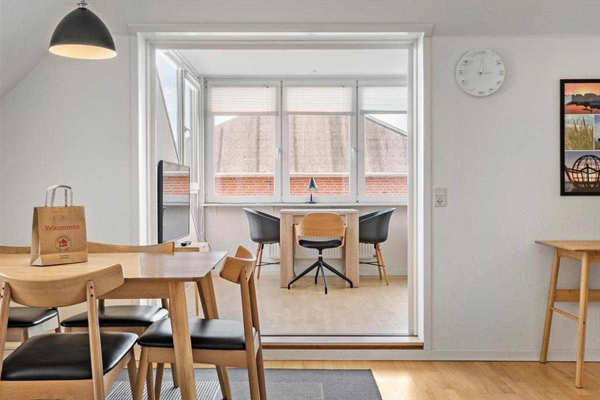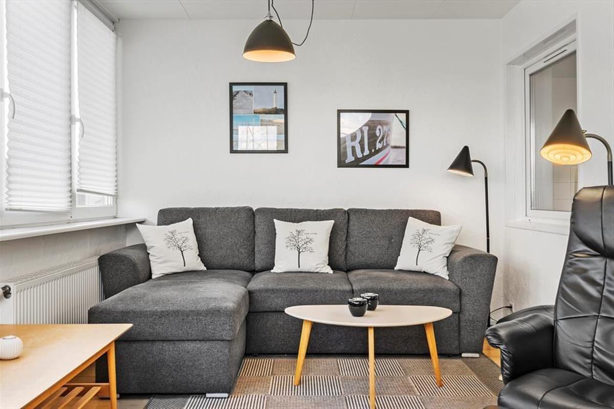 Das Gebäude liegt mit Blick auf den atmosphärischen Hafen des Ortes. Es bietet sich also an, gemütlich am Kai mit den vertäuten Fischkuttern entlang zu schlendern oder in Richtung Fjord und Mamrelund zu spazieren, wo die kleinen Jollen im stillen Wasser des Fjords dümpeln. Sie benötigen nur wenige Gehminuten zu verschiedenen Restaurants und Lokalitäten mit leckerem Essen zum Mitnehmen. Die Geschäfte des Ortes bieten eine große Auswahl und leckere Delikatessen. Sie haben nur einen kurzen Fußweg zum Strand, wo Sie ein Sonnenbad oder ein erfrischendes Bad in der Nordsee nehmen können. Als Mieter haben Sie übrigens auch gratis Zugang zur Schwimmhalle Hvide Sandes. Das Meer und der Fjord sind ein Paradies für Surfer, und der Ort ist zudem umgeben von schöner Natur, die Sie von den schönen Radwegen aus genießen können.