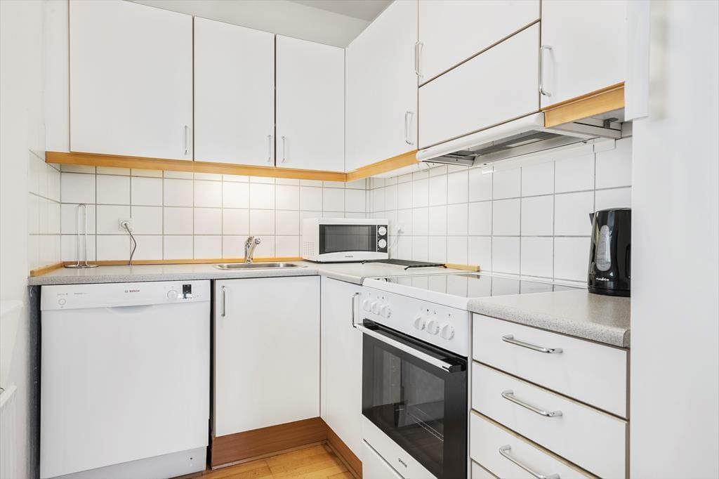 Die Wohnung befindet sich im zweiten Stock eines Gebäudes mit Fahrstuhl. Der Eingangsbereich bietet viel Platz für Ihre Schuhe, Mäntel und Jacken. Die zwei Schlafzimmer bieten Schlafplätze für insgesamt vier Personen. Das Badezimmer ist ausgestattet mit einer Duschnische und einem Vorraum mit Waschbecken. Der Rest der Ferienwohnung verfügt über eine Küche und zwei Wohnzimmer in offener Verbindung, wo Sie viel Platz haben, sich auszubreiten. Die Küche ist funktional eingerichtet und die Spülmaschine erleichtert den Abwasch enorm. Das eine Wohnzimmer ist eingerichtet wie ein Esszimmer mit Loggia, von der aus Sie die Aussicht über den Hafen genießen können. Das andere verfügt über eine Sofaecke und große Fensterflächen mit Aussicht auf die Kammerschleuse und den Fjord. Hier können Sie aus erster Reihe mitverfolgen, wie die Schiffe in den Fjord oder aus dem Fjord heraus geschleust werden. Mit Fernseher und Wi-Fi können Sie die Abende bei einem guten Film oder mit Surfen im Netz verbringen.