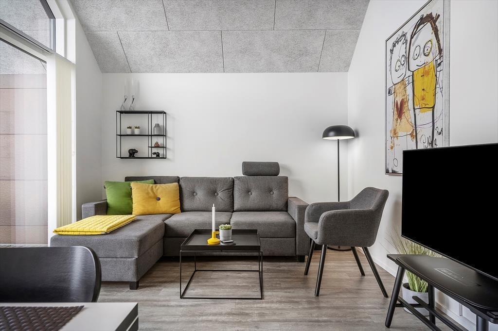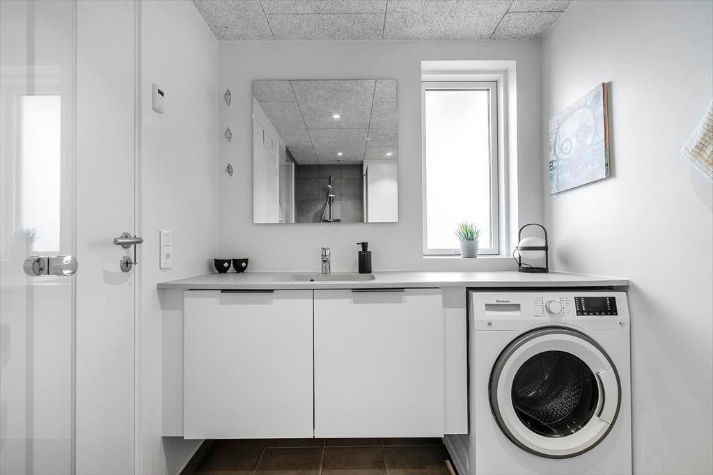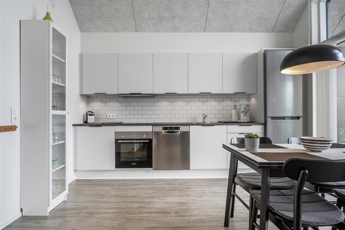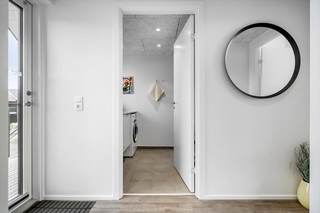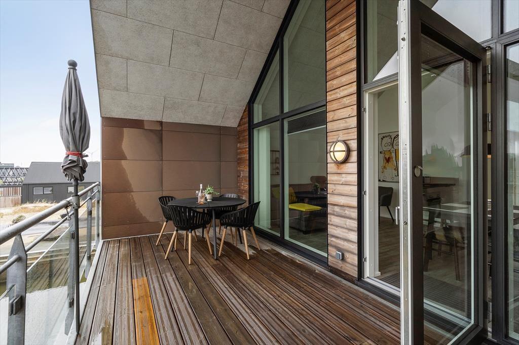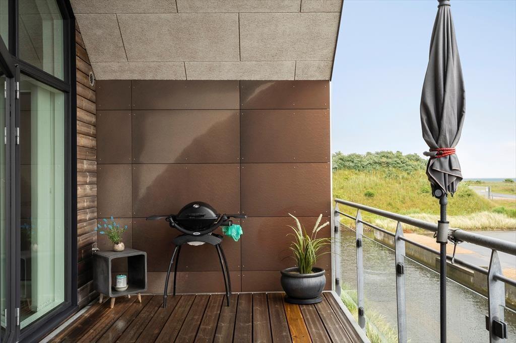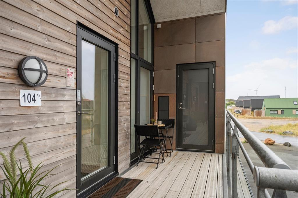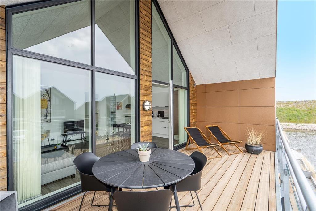 Genießen Sie das Leben im Freien: Die Ferienwohnung verfügt über einen schönen, nach Süden ausgerichteten, überdachten Balkon, von dem aus Sie den Blick auf den Fjord bewundern können. Der Balkon ist der ideale Ort, um den Tag mit einer Tasse Kaffee zu beginnen oder den Abend mit einem Glas Wein bei Sonnenuntergang ausklingen zu lassen. Vom nordseitigen Balkonbereich können Sie zudem die letzten Sonnenstrahlen des Tages einfange und vielleicht sogar das Licht des Lyngvig-Leuchtturms in der Ferne erblicken. Parken ist unkompliziert, da es direkt unter der Wohnung einen Parkplatz gibt.