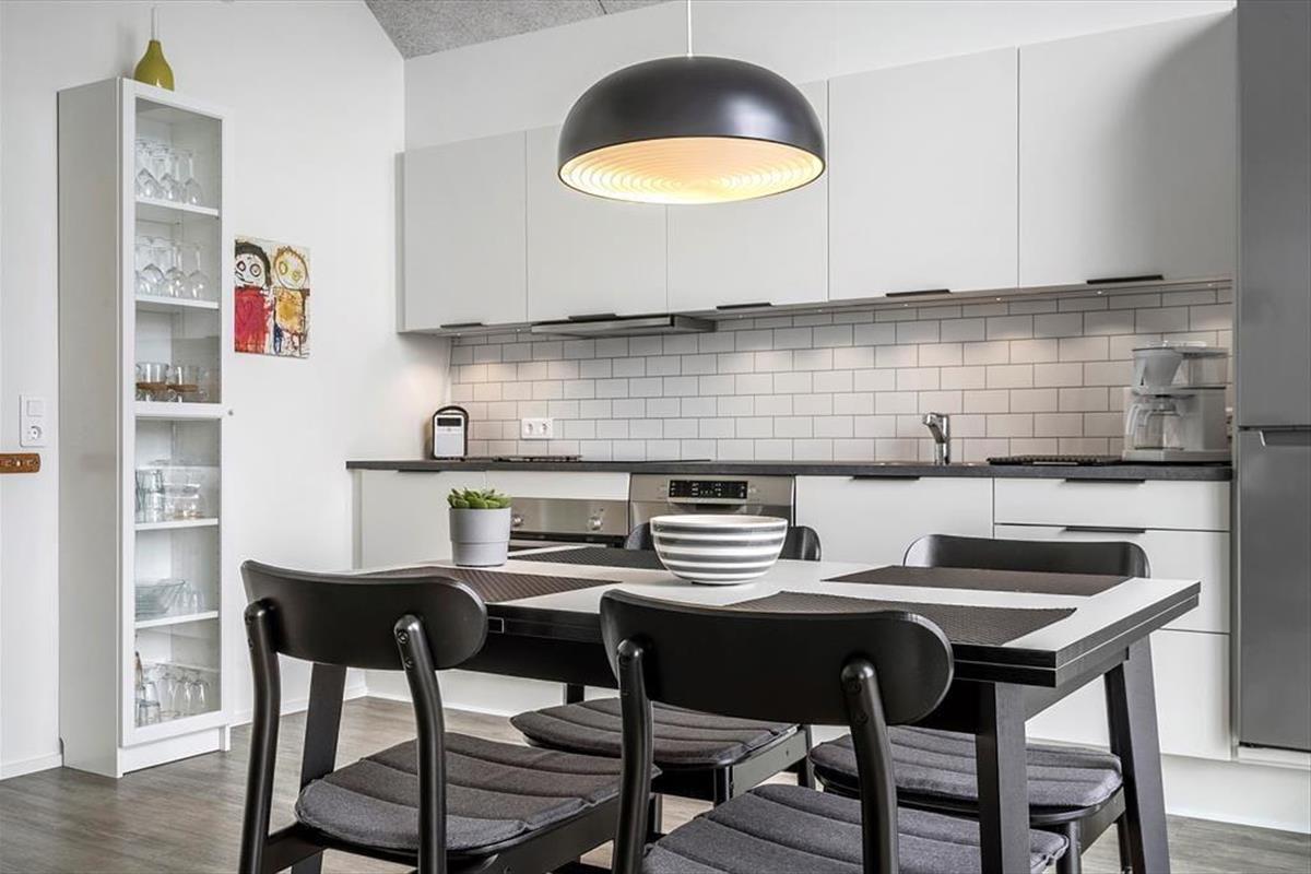 Diese moderne Ferienwohnung befindet sich im ersten Stock eines architektonisch gestalteten Gebäudes aus dem Jahr 2020. Mit ihrer hohen Lage und den großen Fensterfronten strömt viel natürliches Licht hinein, wodurch eine fantastische Aussicht auf die schöne Umgebung geboten wird. Die Einrichtung ist sowohl stilvoll als auch komfortabel, sodass Sie sich sofort wie zu Hause fühlen werden. Das Wohnzimmer und die Küche sind in einem offenen Wohnbereich vereint, in dem Sie schöne Momente mit Freunden oder einem Partner genießen können. Nach einem erlebnisreichen Tag können Sie sich im Sofa entspannen oder sich um den Esstisch versammeln und ein köstliches Abendessen mit lokalen Delikatessen oder frisch gefangenem Fisch genießen. Die Wohnung umfasst auch ein elegantes Badezimmer mit Dusche und ein gemütliches Schlafzimmer, damit Sie nach einem ereignisreichen Tag in Komfort entspannen können.