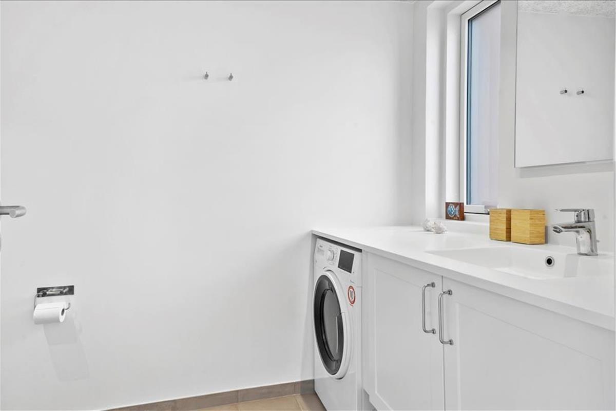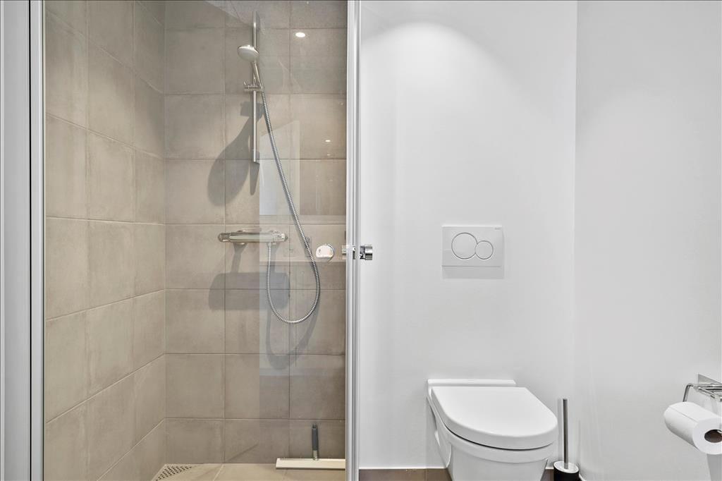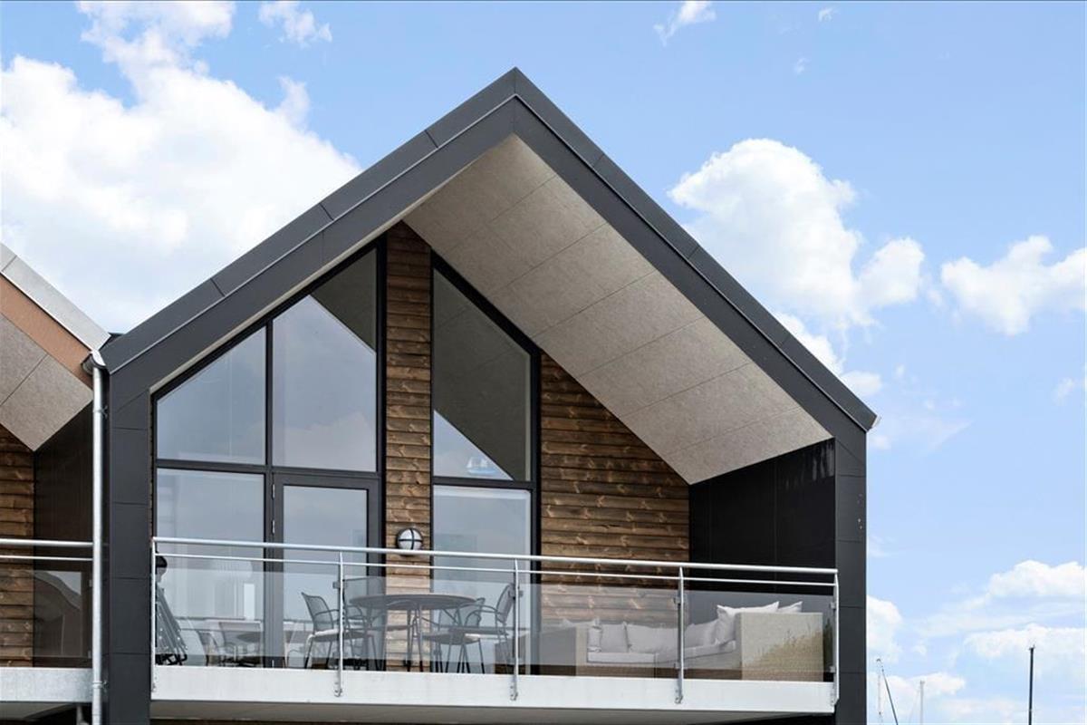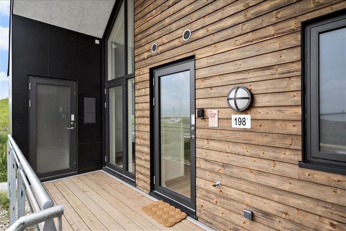 Im Außenbereich verfügt die Wohnung über einen Parkplatz und zwei überdachte Balkone. Ein Balkon ist mit dem Treppenhaus verbunden. Hier kann man am Ende des Tages in der Sonne sitzen und auf das Leben am und auf dem Wasser hinunterschauen. Auch vom Südbalkon aus hat man einen herrlichen Blick auf den Kanal und sogar auf den Ringkøbing Fjord.