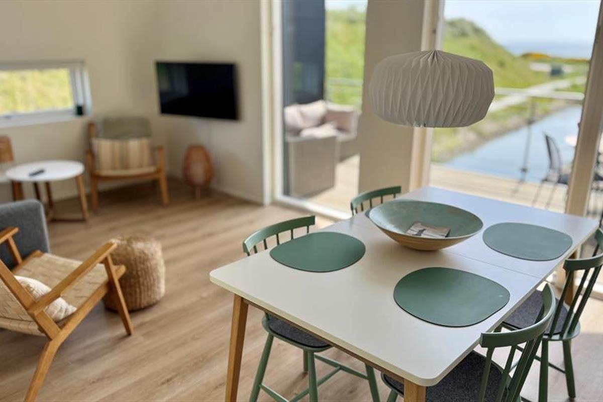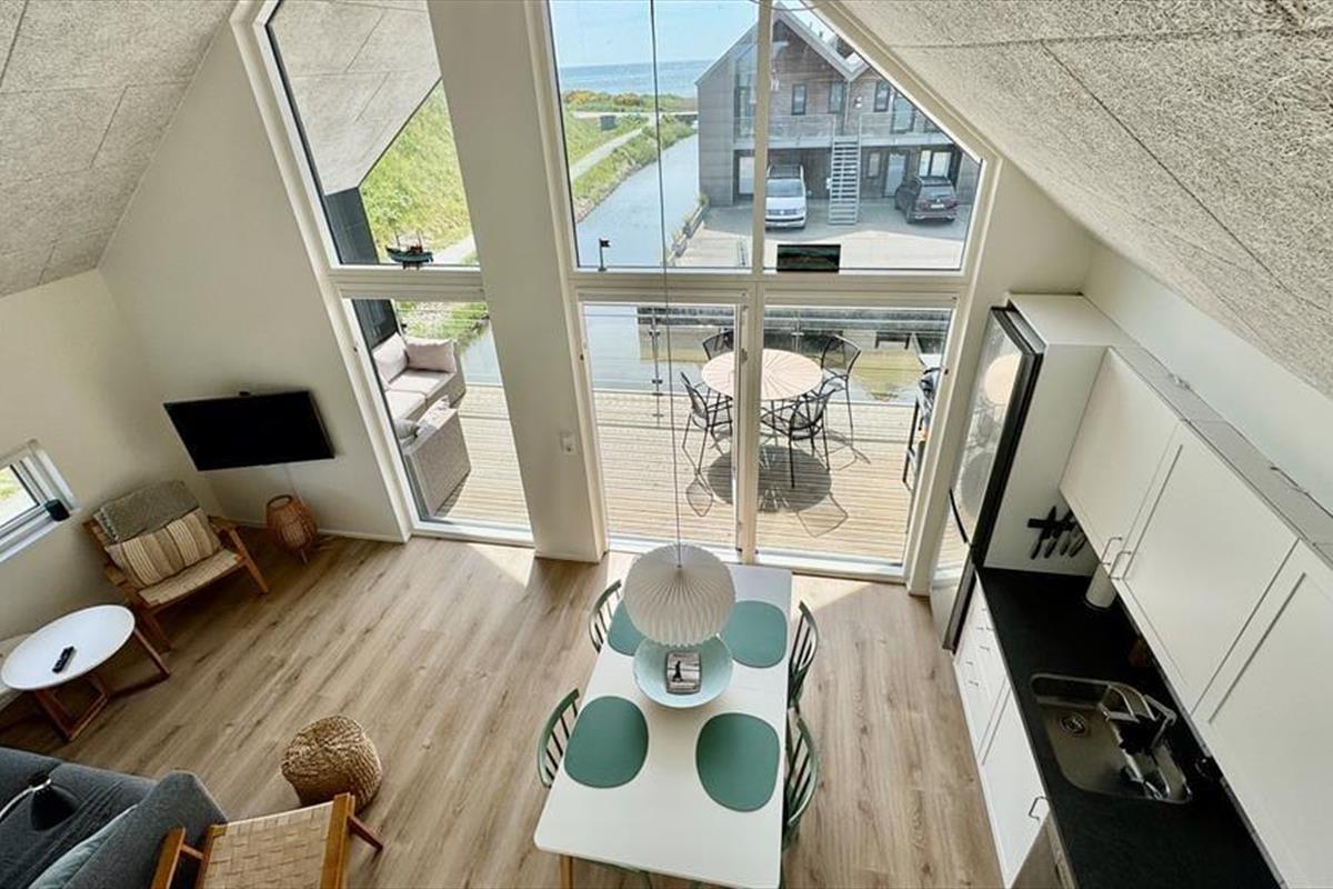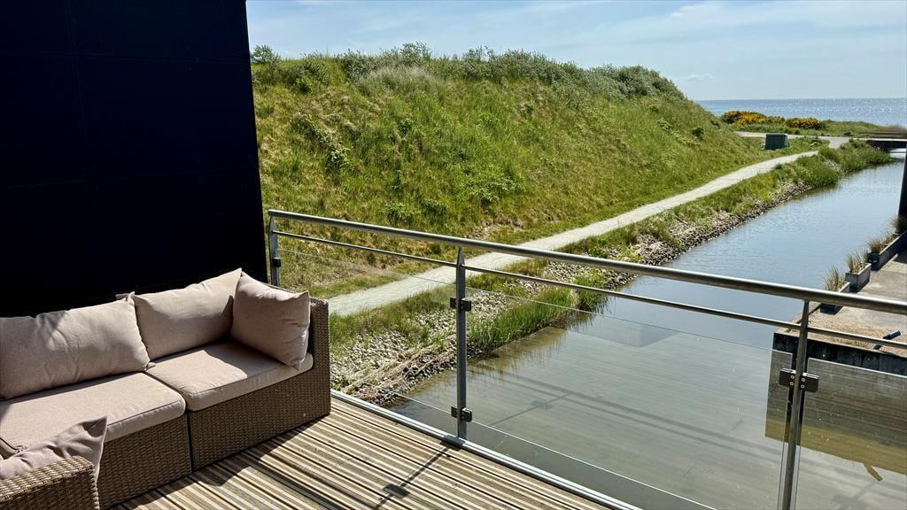 Diese moderne Ferienwohnung von 2021 bietet einen schönen Rahmen für angenehme Urlaubstage. Die Wohnung ist hochwertig eingerichtet und verfügt über zwei Balkone, die beide wunderschön an den Kanälen von Langsand Langs Vand liegen. Der Blick reicht bis zum Ringkøbing Fjord, ein absoluter Pluspunkt, ebenso wie die zentrale Adresse in Hvide Sande.