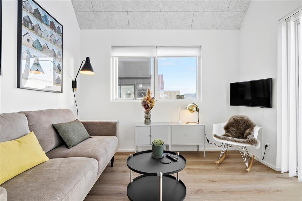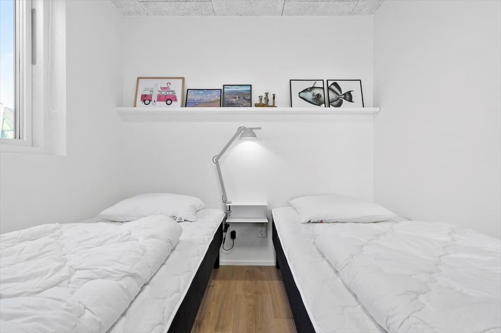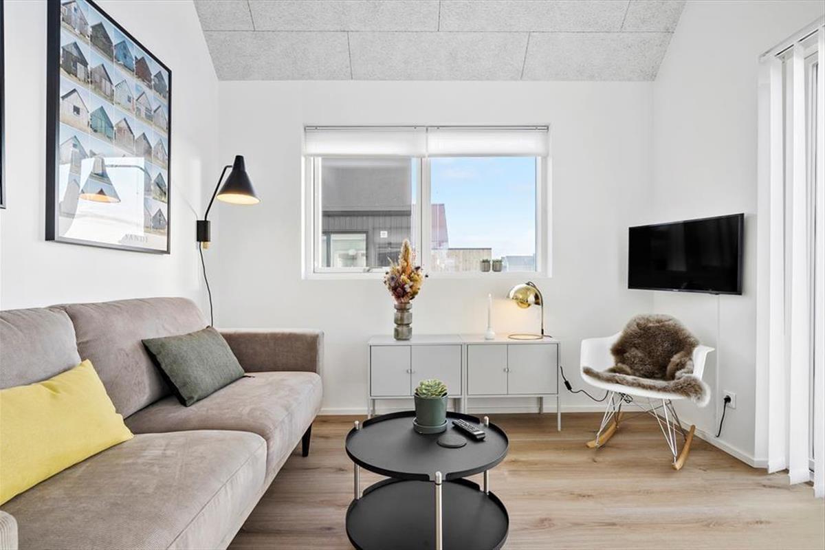 Das 50 m² große Ferienhaus, das erst im Jahr 2022 gebaut wurde, befindet sich im Gebiet Langsand Langs Sand, bei dem es sich um eine reizende Ansammlung von Ferienhäusern mit farbenfrohen Holzfassaden handelt. Dieses Exemplar hebt sich mit seiner grünen Farbe deutlich vom maritimen Straßenbild ab. Das Hausinnere präsentiert sich mit seinen weißen Wänden, den Akustikdecken und den großen Fensterpartien hell und einladend. Der Wohnraum lädt mit seiner komfortablen Möblierung, dem Fernseher und der gut ausgestatteten Küche zu entspannten Stunden ein. Während der kühleren Jahreszeiten sorgt eine Fußbodenheizung im gesamten Objekt für angenehme Temperaturen. Das Badezimmer und die beiden Schlafräume sind von hoher Qualität. Bis zu vier Personen verbringen hier richtig schöne Urlaubstage.