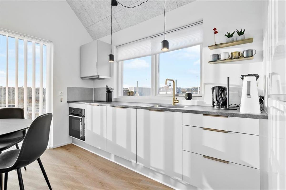 Die Lage des Hauses in Hvide Sande ist perfekt. Sie wohnen zentral und dennoch angenehm zurückgezogen von der Hauptstraße. Bereits nach 150 Metern erreichen Sie den Ringkøbing Fjord und den alten Tyskerhavnen, in dem Sie bis heute mitverfolgen können, wie die Fjordfischer Ihren täglichen Fang anlanden. Innerhalb weniger Minuten spazieren Sie zur großen Schleuse, die die Hafenstadt in zwei Bereiche unterteilt. An der Schleuse dürfen sich Angler auf viele Angelplätze freuen. Imposant ist von hier aus die Aussicht über Meer, Fjord und Hafen. Einkaufsmöglichkeiten, interessante Geschäfte und die Lokalitäten Hvide Sandes sind ebenfalls zu Fuß erreichbar. Da Hvide Sande auf einer schmalen Nehrung zwischen Nordsee und Fjord liegt, erfreuen sich Badeurlauber, Surfer und andere Wassersportler bester Bedingungen.