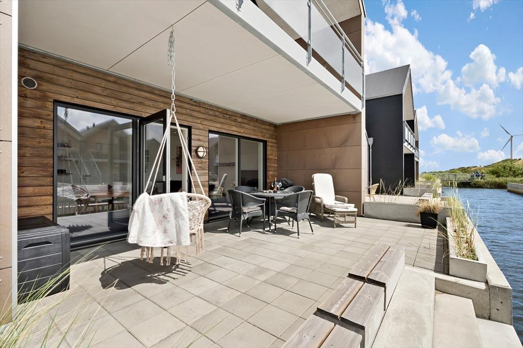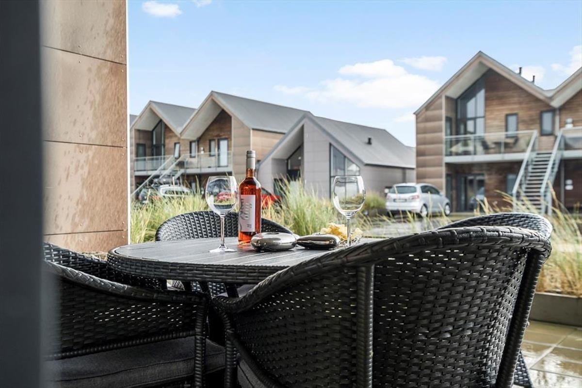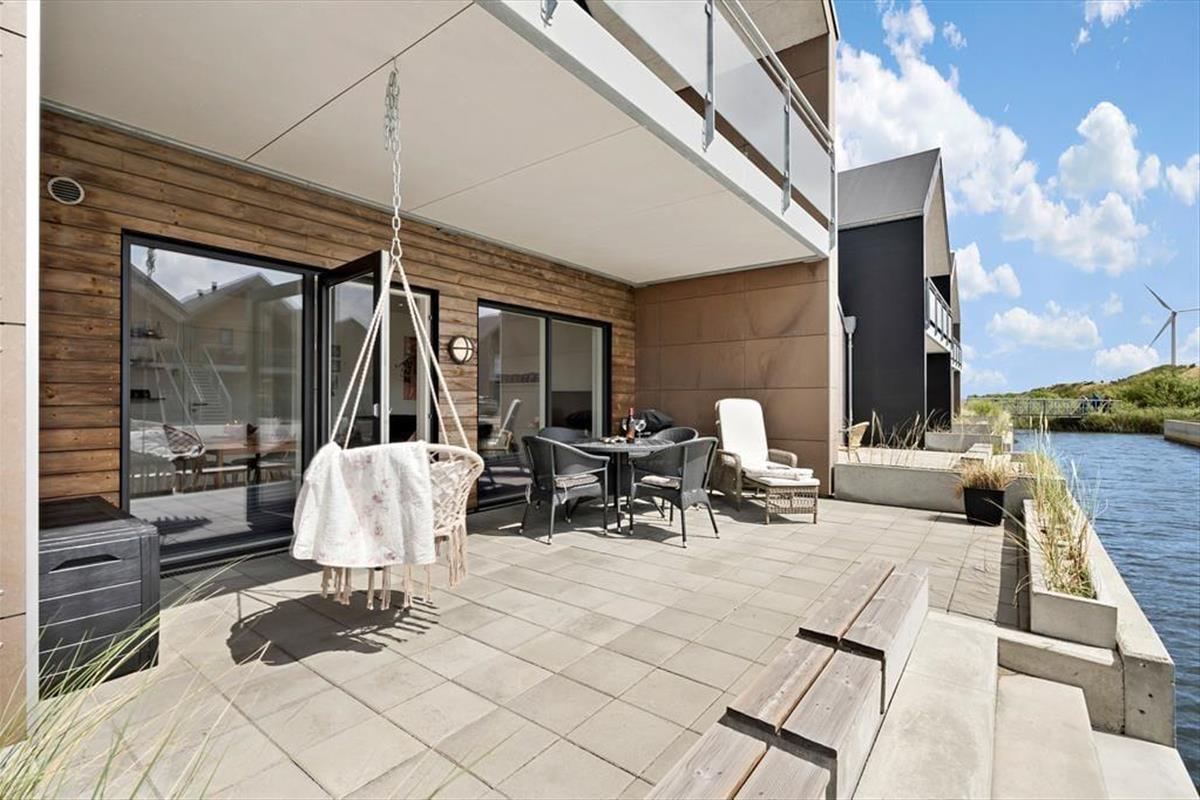 In der modernen Wohnanlage Langsand Langs Vand befinden sich die Ferienwohnungen direkt am Wasser. Dadurch erwartet Sie eine ganz einzigartige Atmosphäre. Während Sie sich auf der großen, teilweise überdachten Südterrasse entspannen, lauschen Sie dem leisen Plätschern der Wellen und beobachten die sich auf dem Wasser spiegelnden Sonnenstrahlen.
