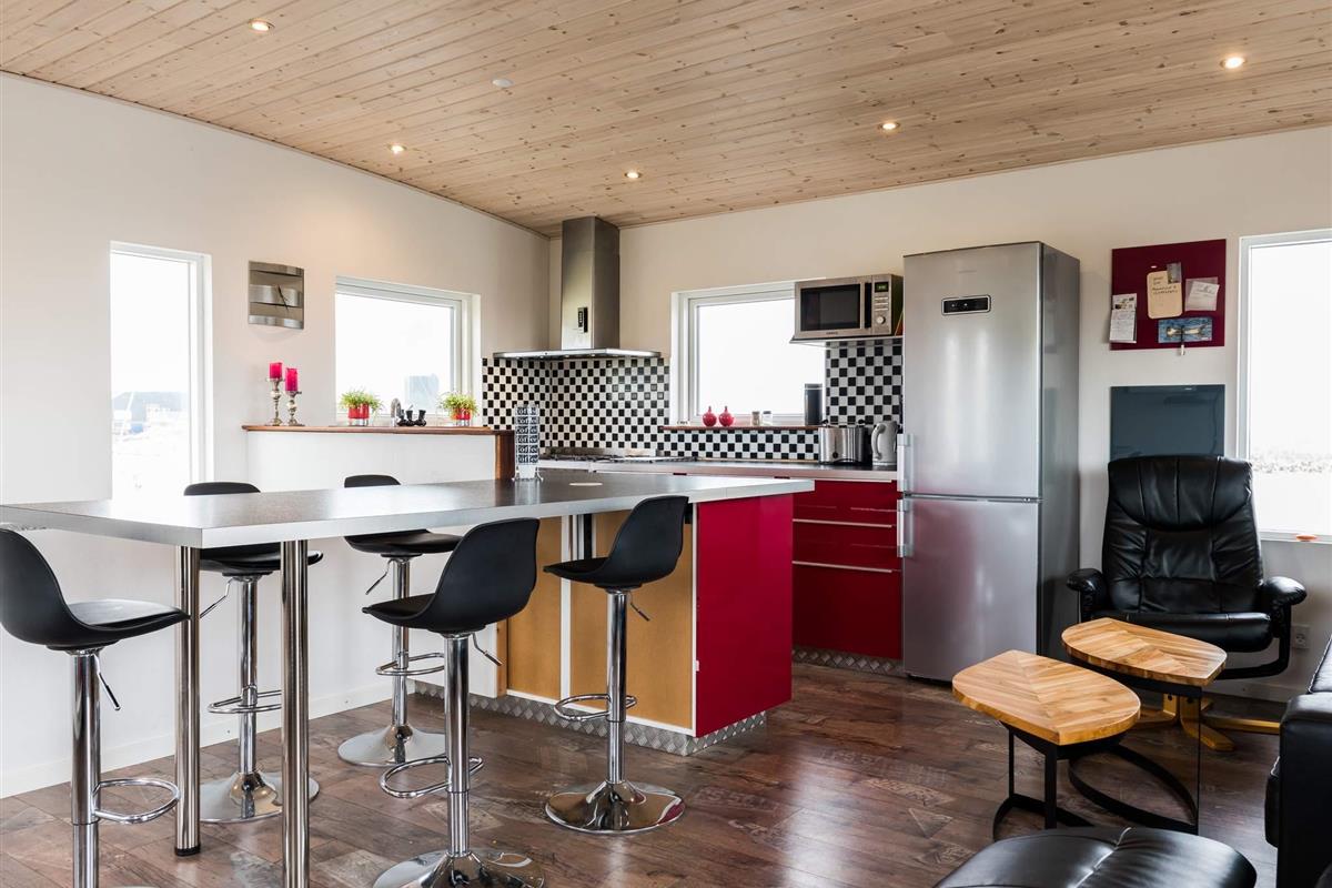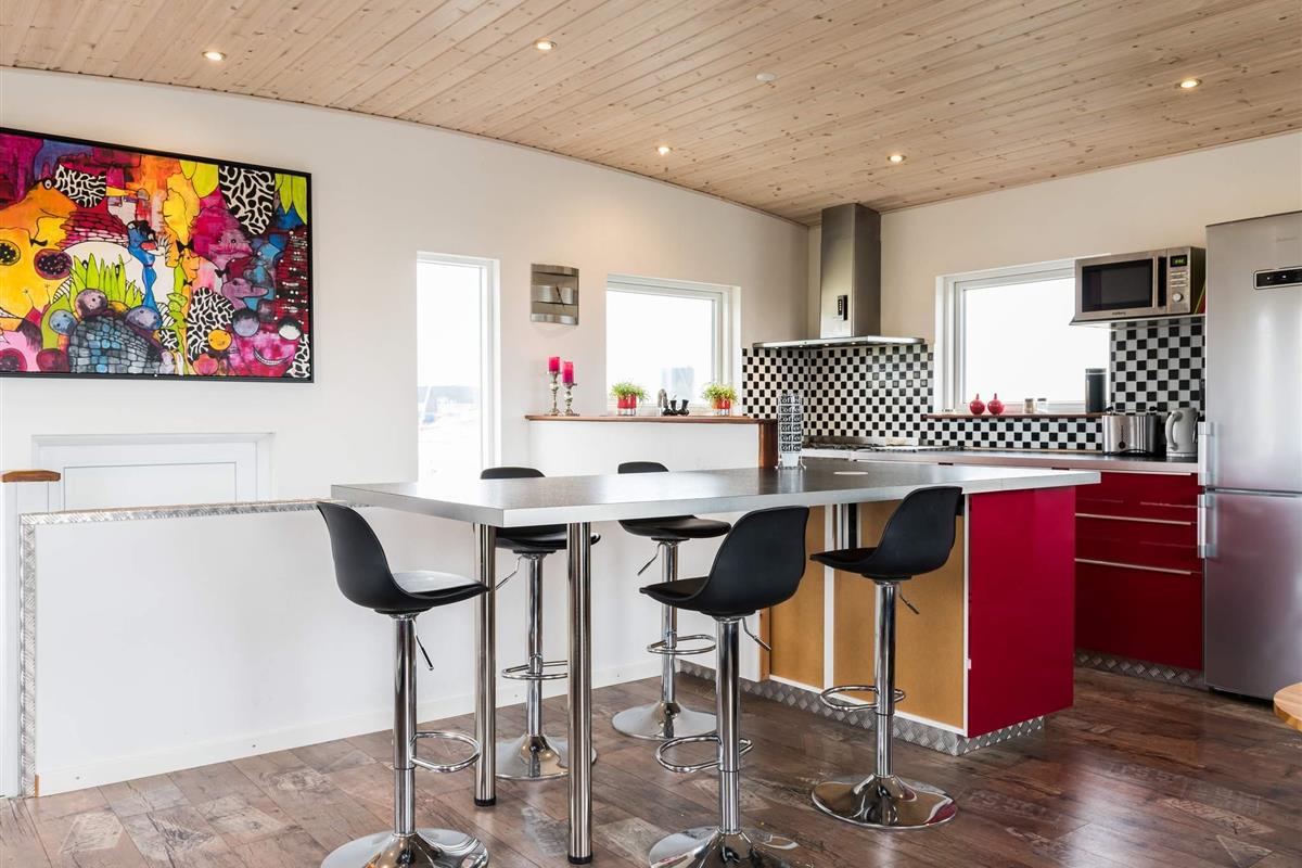 DER PREIS IST INKLUSIVE STROM UND WASSER - Ein Urlaub mal anders und zwar auf einem der seltenen Hausboote! Im Hafen und nicht weit von der Innenstadt Hvide Sandes entfernt liegt dieses großartige Boot, dass zwei Ebenen hat. Auf der ersten Etage ist der offene Wohn- und Essbereich, in dem auch der Karminofen steht. Vom Wohnbereich können Sie direkt auf die große Terrasse gehen und von dort haben Sie eine fantastische Aussicht über den Ringkøbing Fjord und dem Hafen. Aber auch die anderen Terrassen, die rund ums Hausboot verlaufen, haben eine tolle Aussicht. Auf der unteren Ebene liegen die Schlafzimmer - 2 haben je ein Doppelbett und eins 1 Einzelbett. Selbst das Badezimmer ist groß und bietet Ihnen einen gewissen Komfort. Für diejenigen, die auf der Suche nach etwas Besonderes sind ist dieses Hausboot ideal. Hund ist erlaubt. Endreinigung ist im Preis enthalten!