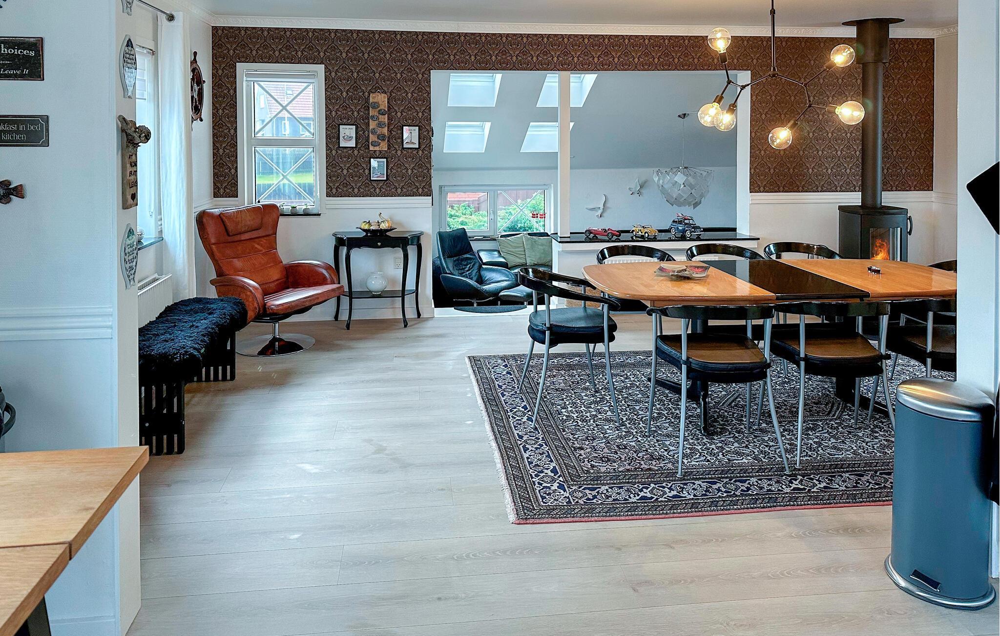 Kom als familie of groep vrienden naar dit authentieke vakantiehuis in Hvide Sande voor een fantastische vakantie. Ontspan in de stijlvol ingerichte kamers en geniet van de tijd met uw geliefden. Zit overdag in de zon op de binnenplaats of luister 's avonds naar het geknetter van de open haard als u met z'n allen de dag doorneemt. Door de vele leuke decor details en de ligging in de stad zult u zich snel als een local voelen.