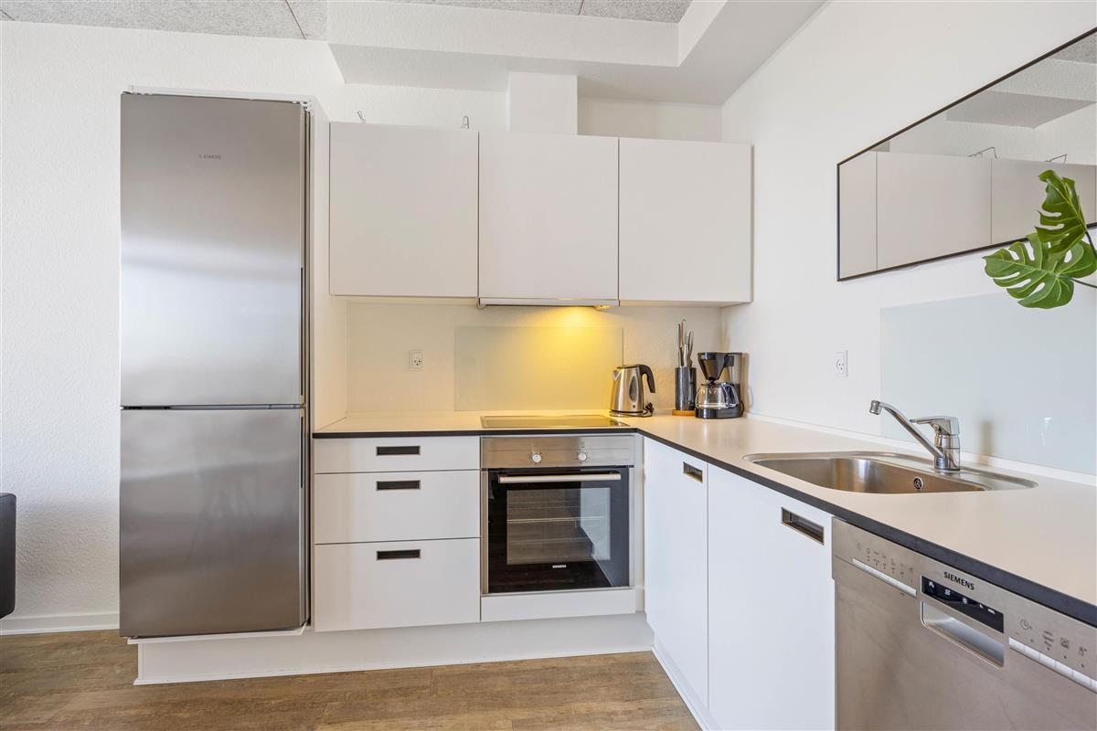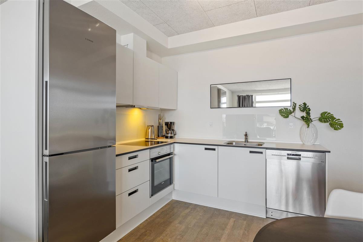 The tasteful furnishings perfectly complement the 67-square-metre space. An east-facing balcony allows you to sit outdoors in comfort, watch the sunrise over the fjord, and simply unwind.