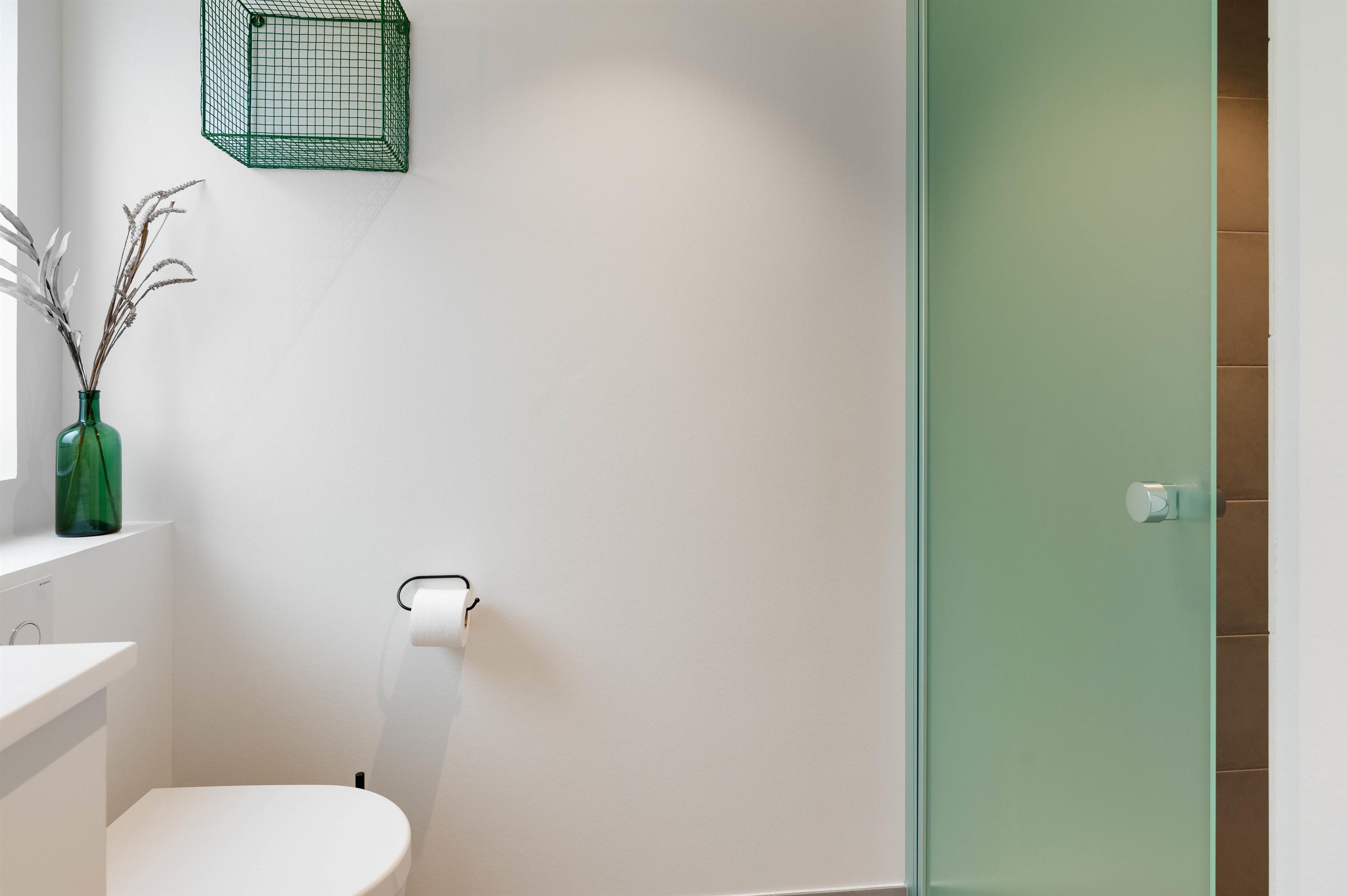 The bright bathroom features underfloor heating for cosy warmth and comfort.