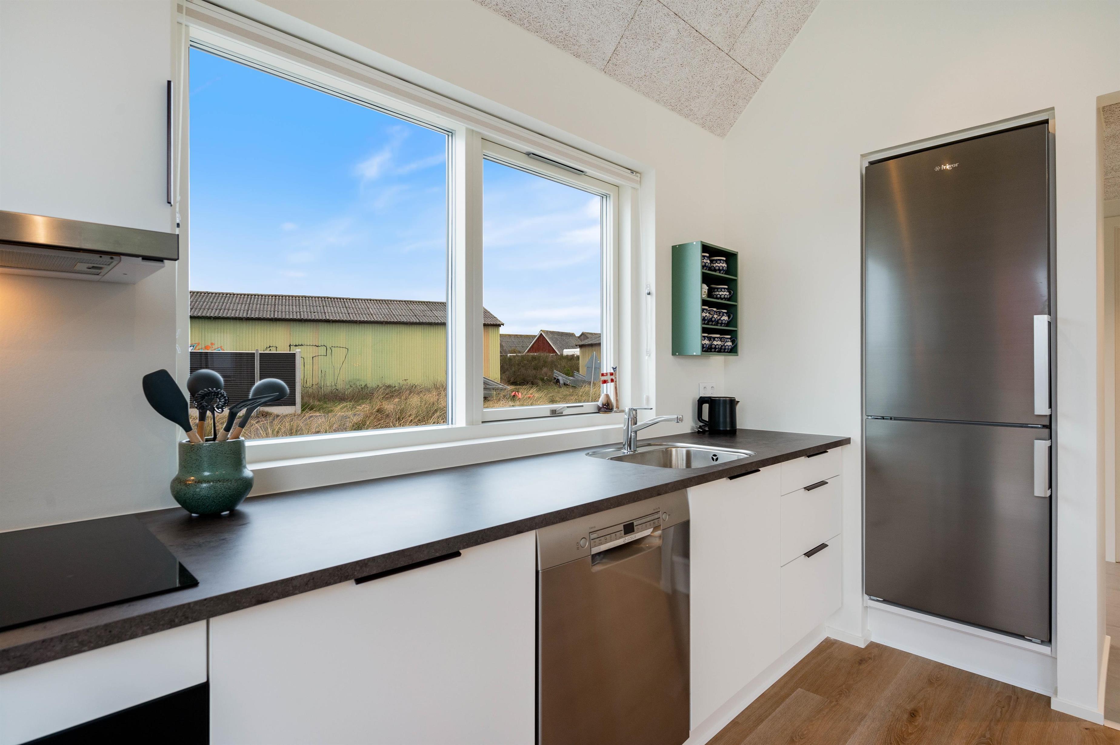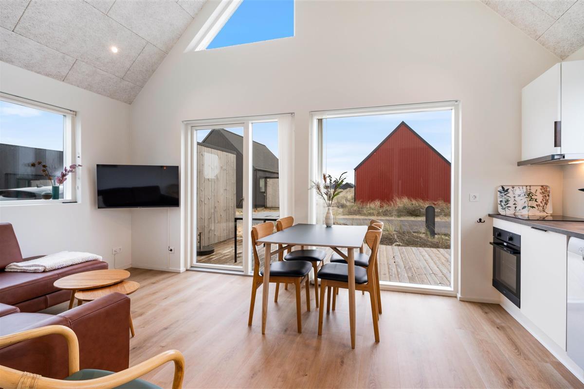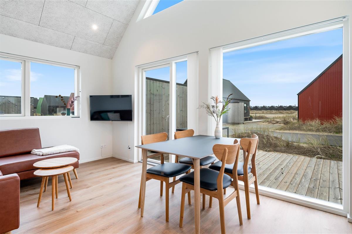 Across 50 square metres, you'll find everything needed for a relaxing holiday on the Danish North Sea coast. Thanks to its clever layout, this beautiful holiday home comfortably accommodates four people and a dog. The latest technology and practical Scandinavian furnishings characterise this holiday home, ensuring a comfortable stay.